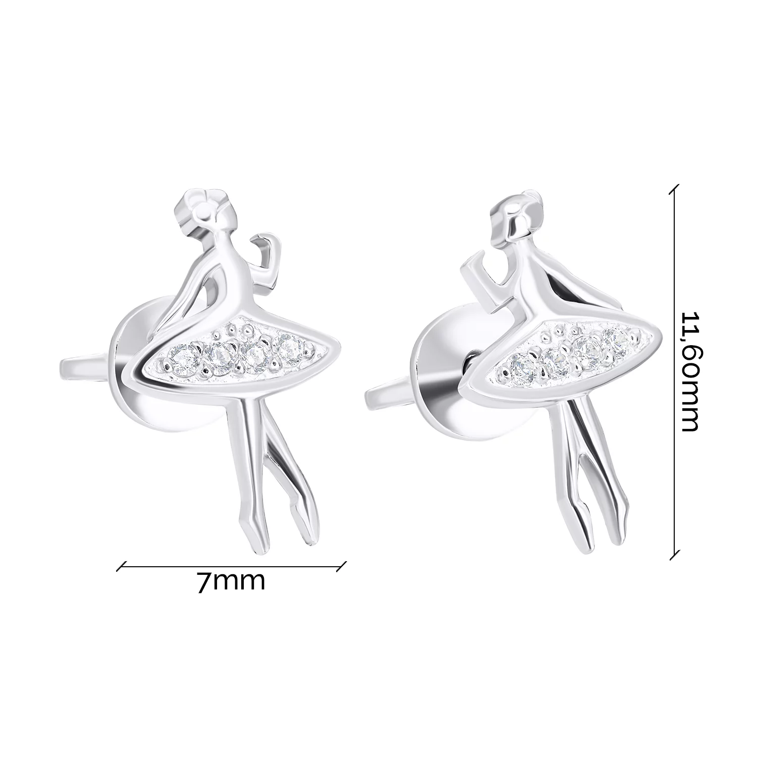 Серебряные детские серьги-гвоздики с фианитами "Балерина" - 1548807