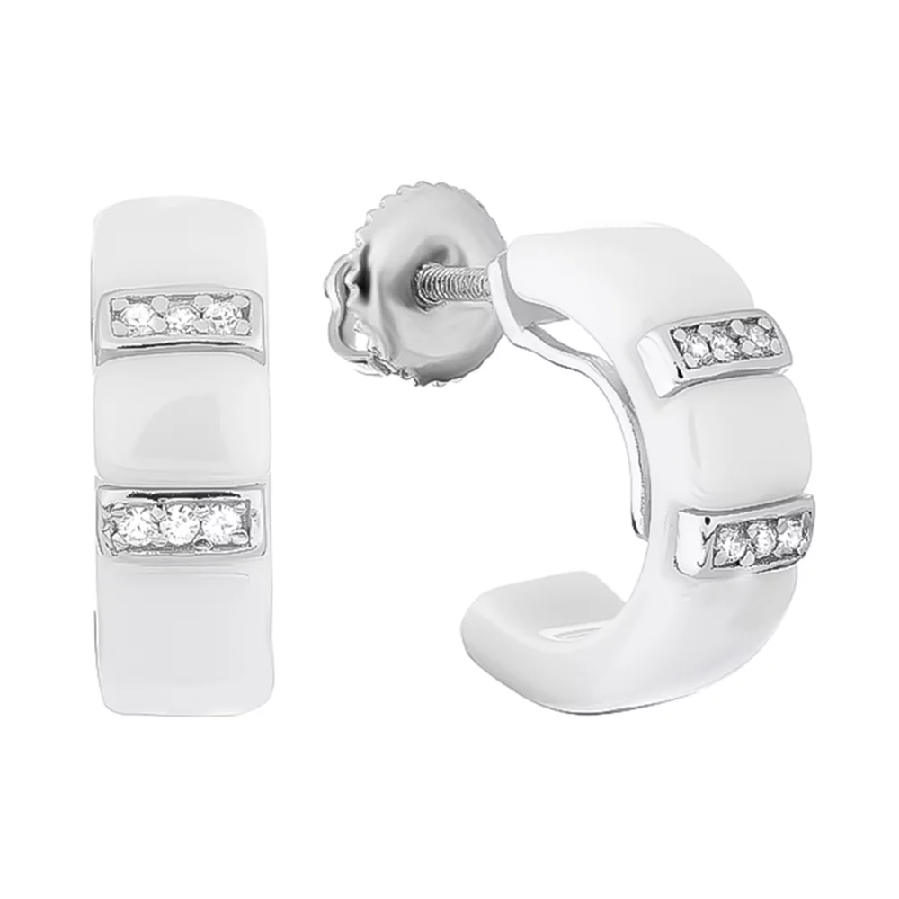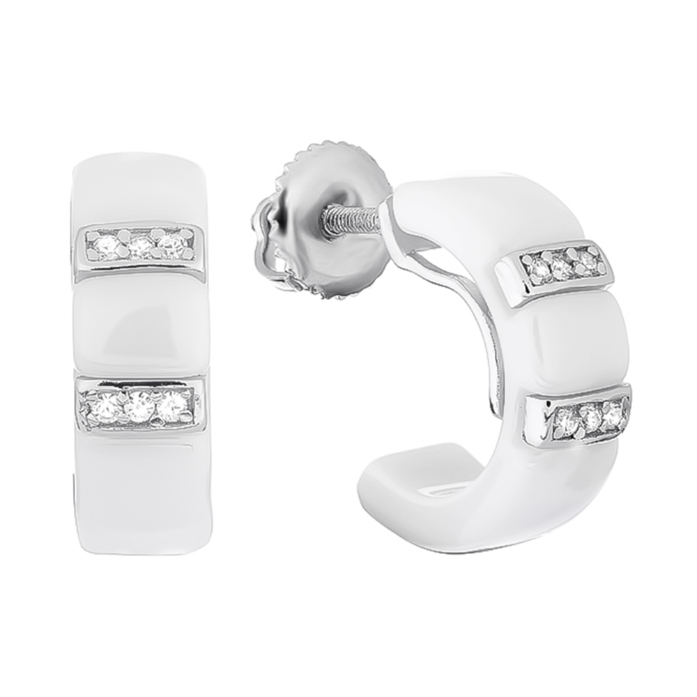 Серебряные серьги-гвоздики с фианитами и керамикой - 1508102