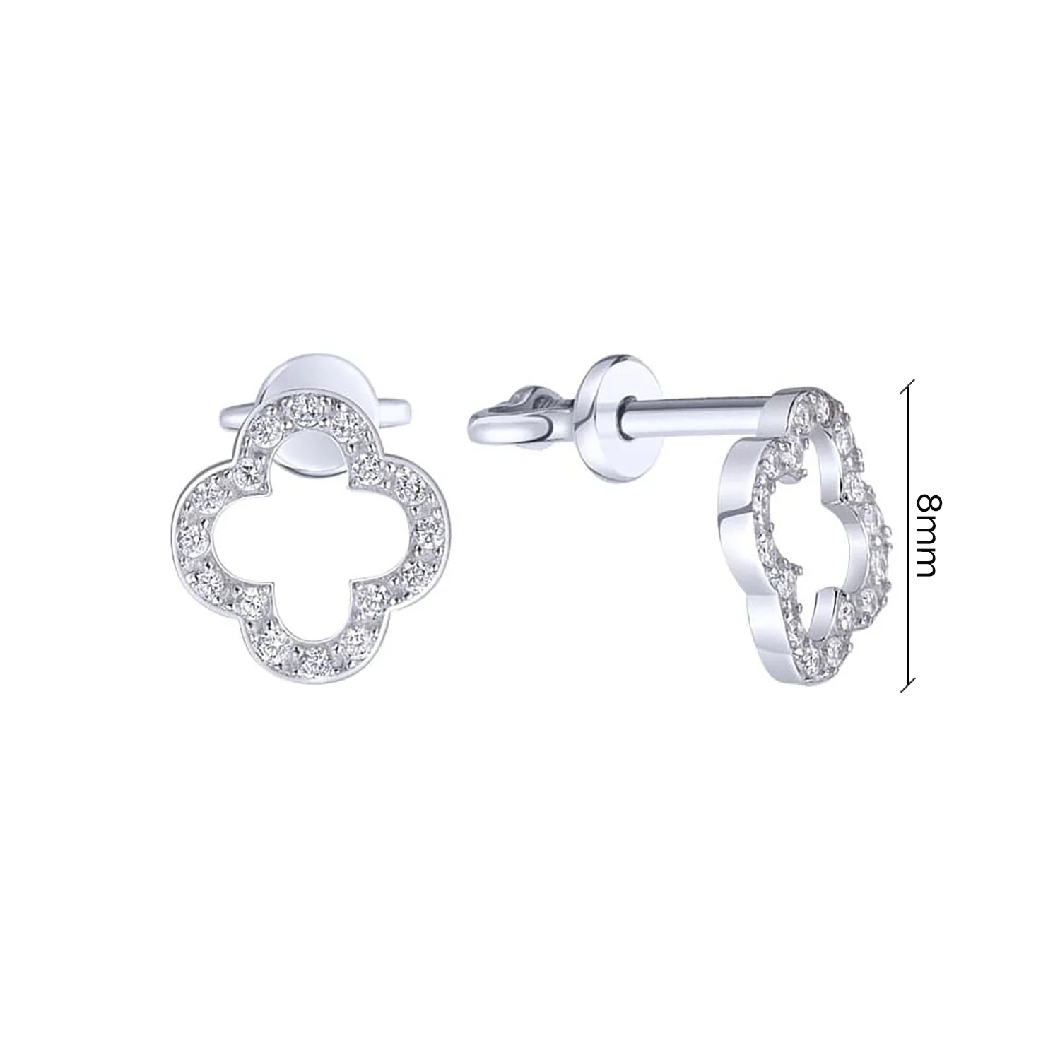 Серебряные сережки-гвоздики "Клевер" с желтым родированием с малахитом и фианитами - 1880151