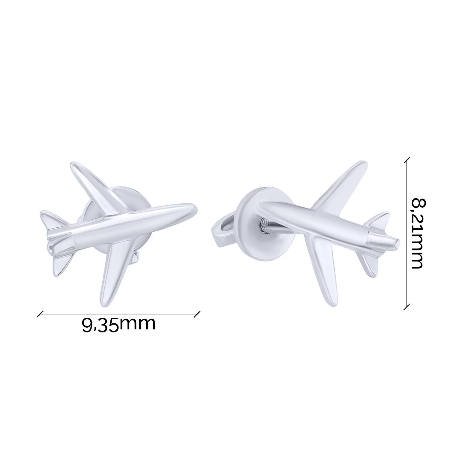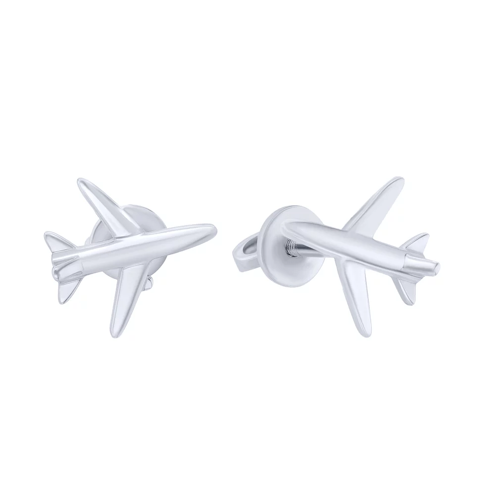 Серебряные серьги-гвоздики "Самолетик" - 1609585