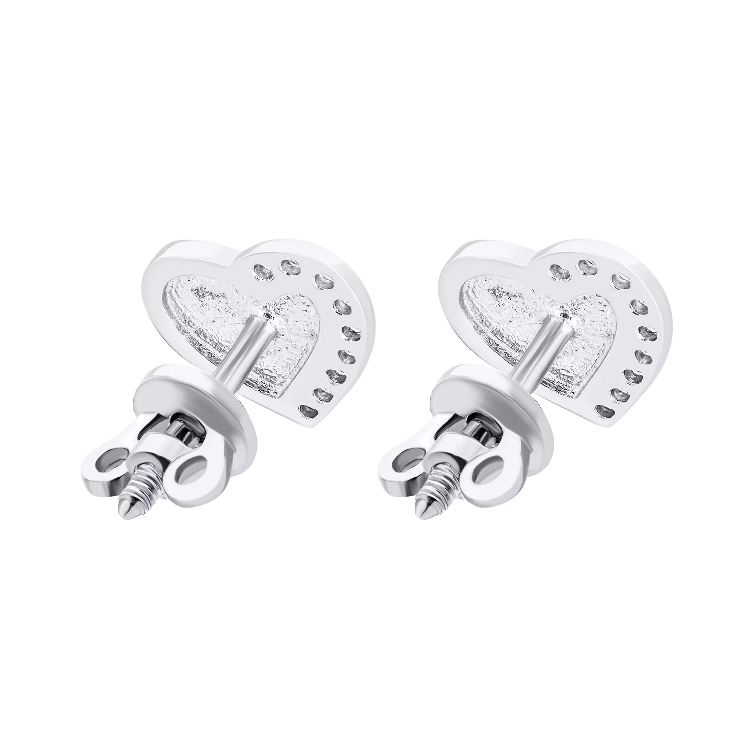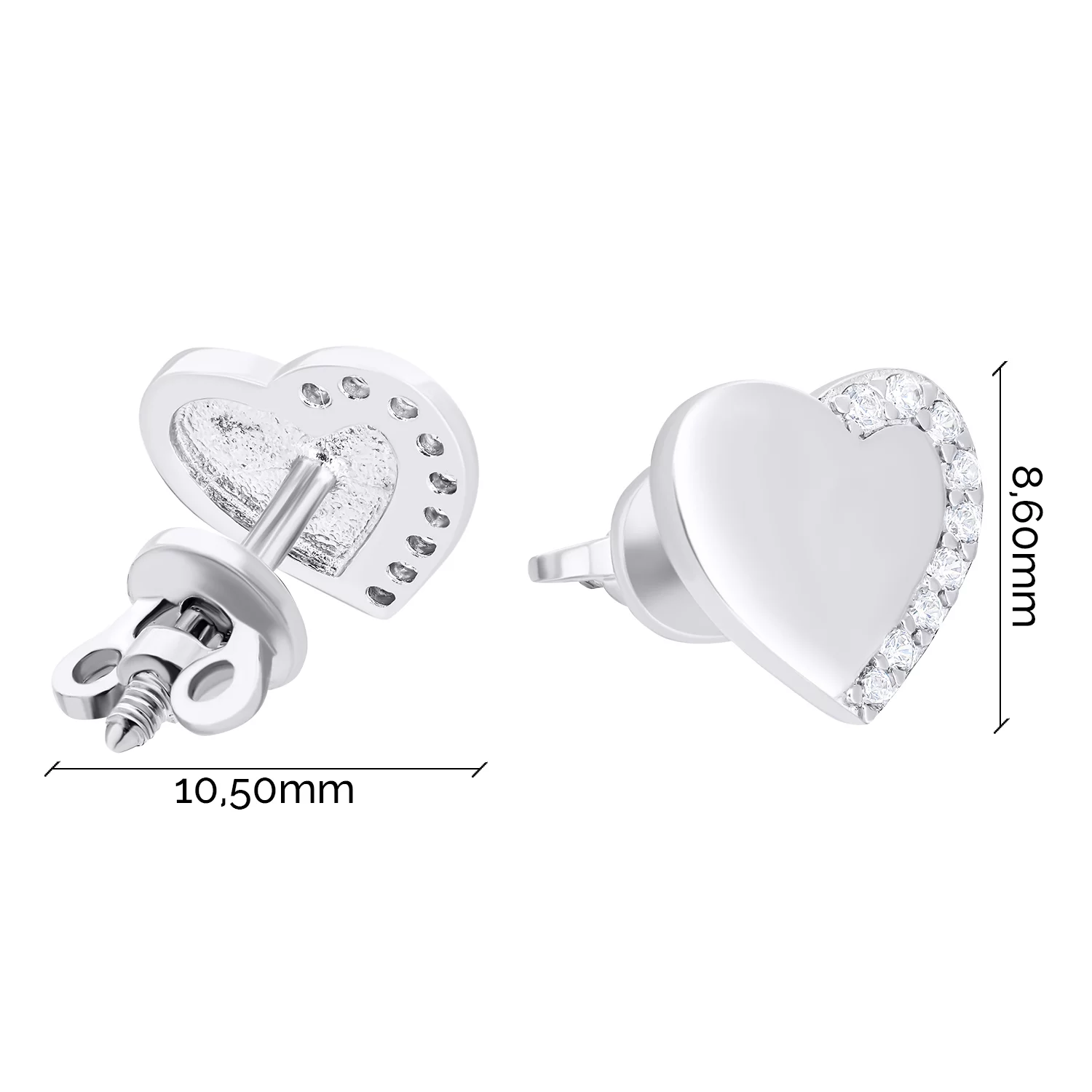 Серебряные серьги-гвоздики "Сердечко" с фианитами - 1548788