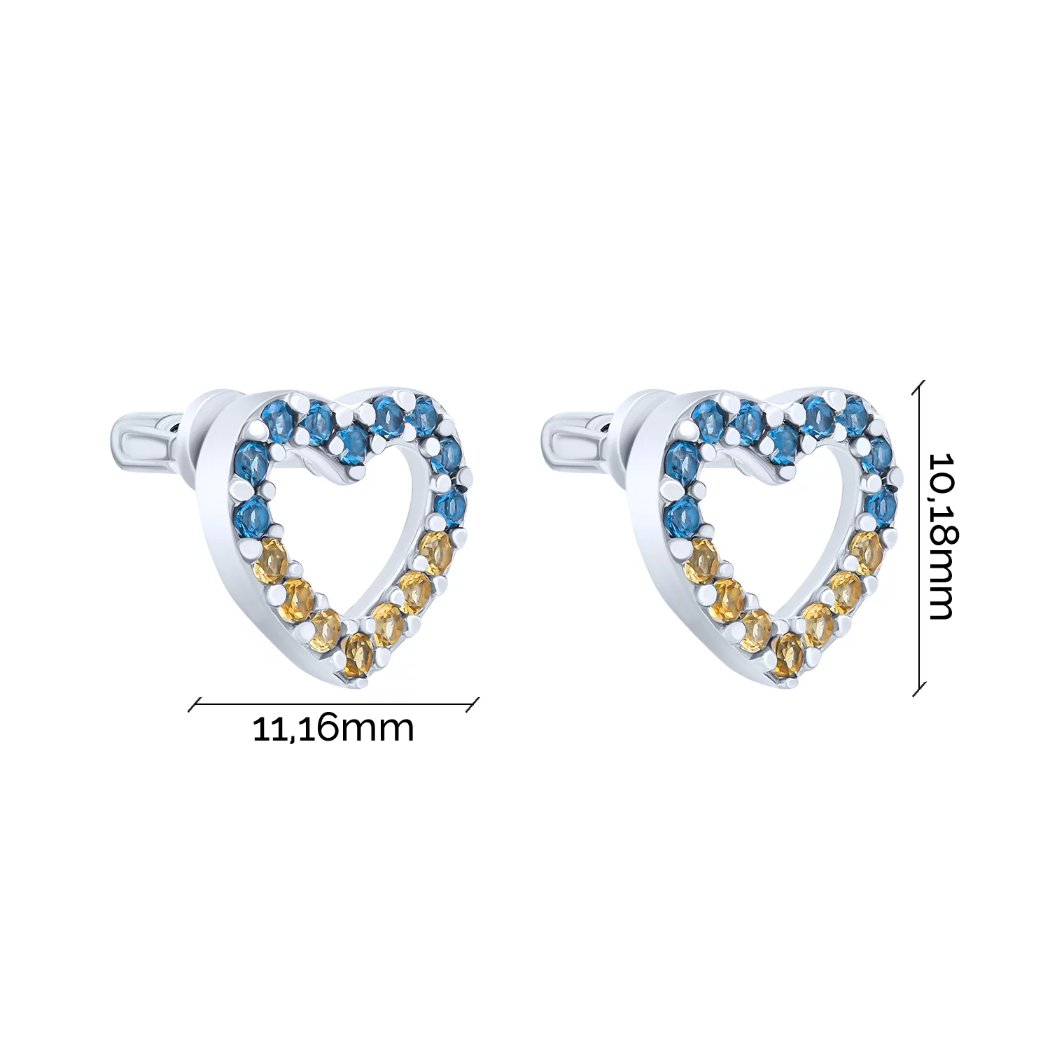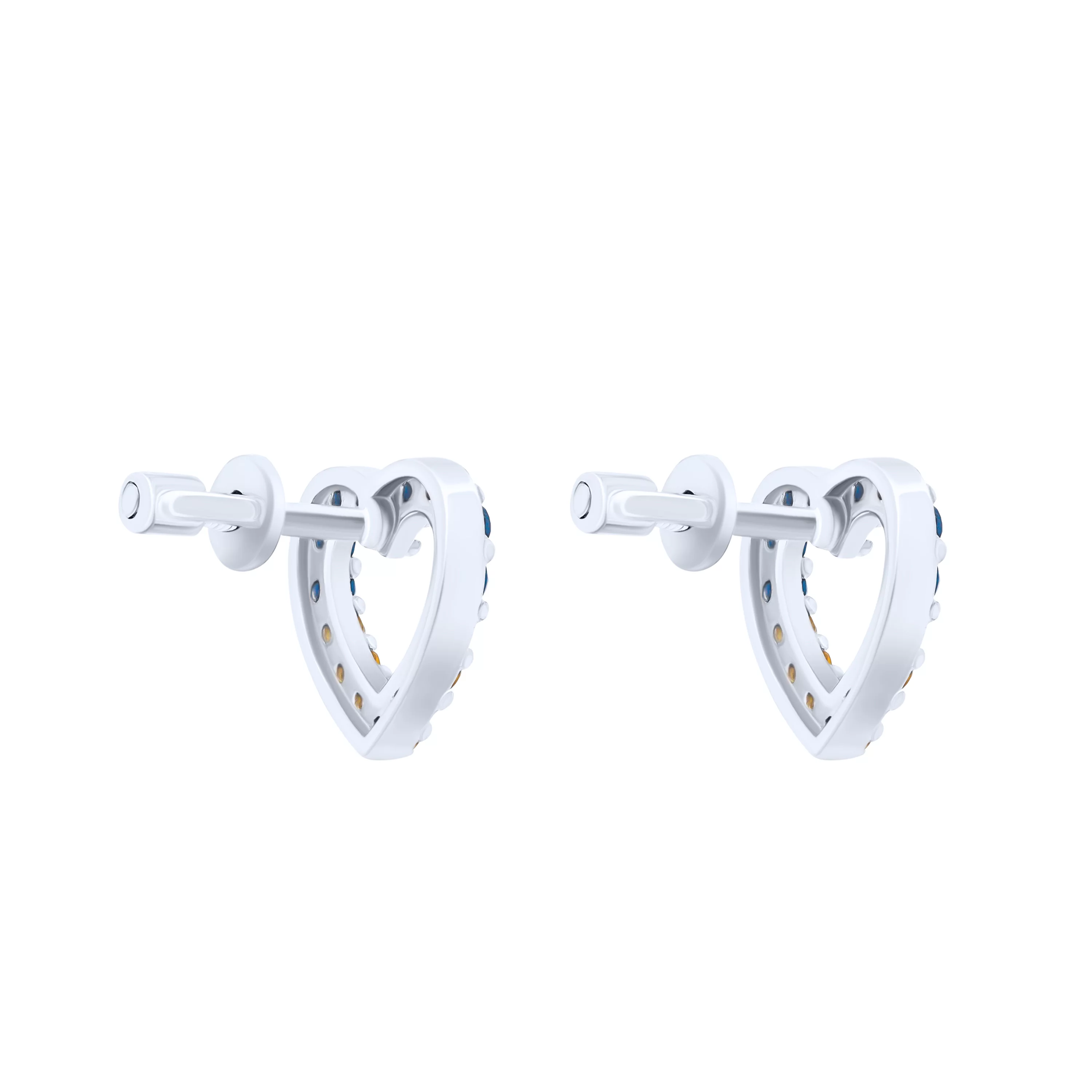 Серебряные серьги-кольца с подвеской "Сердечко" с эмалью и фианитами - 1683297