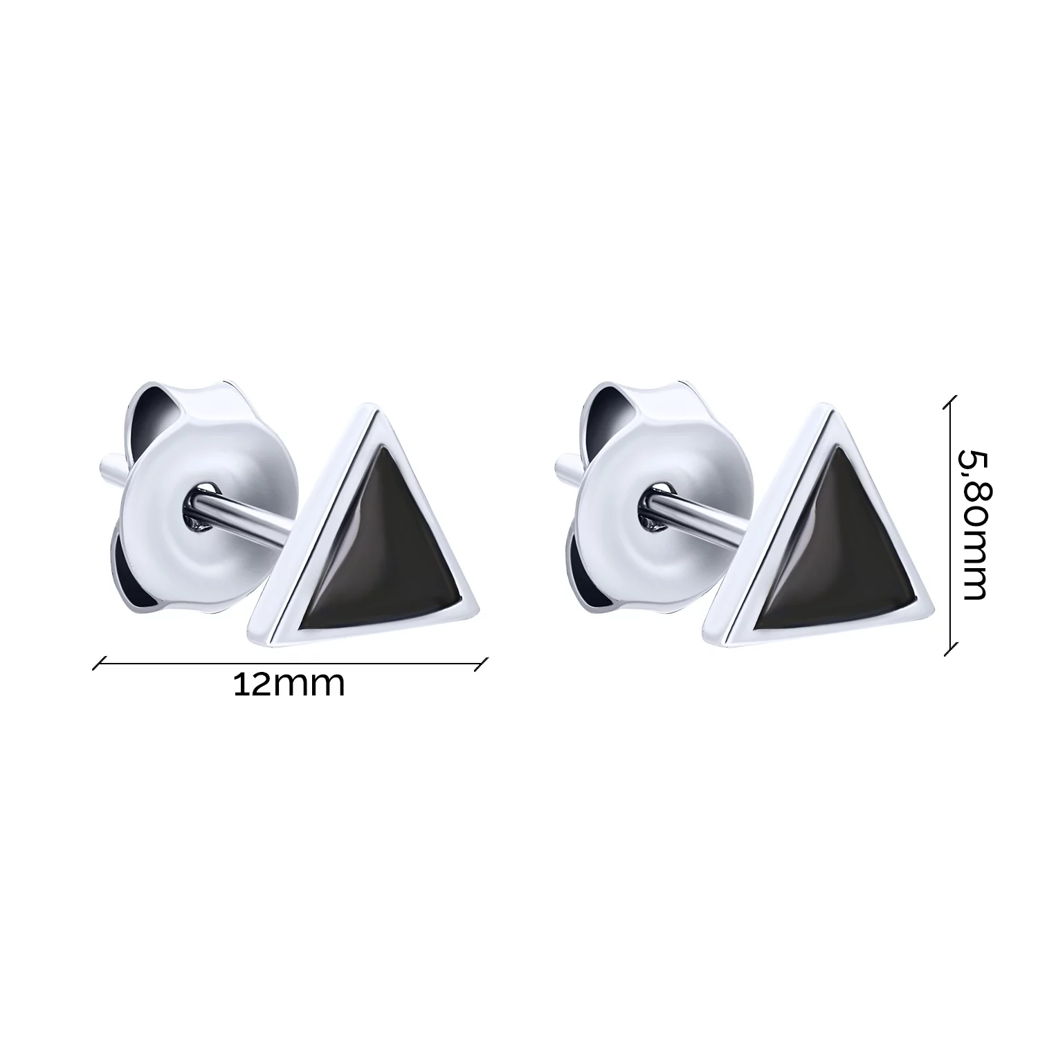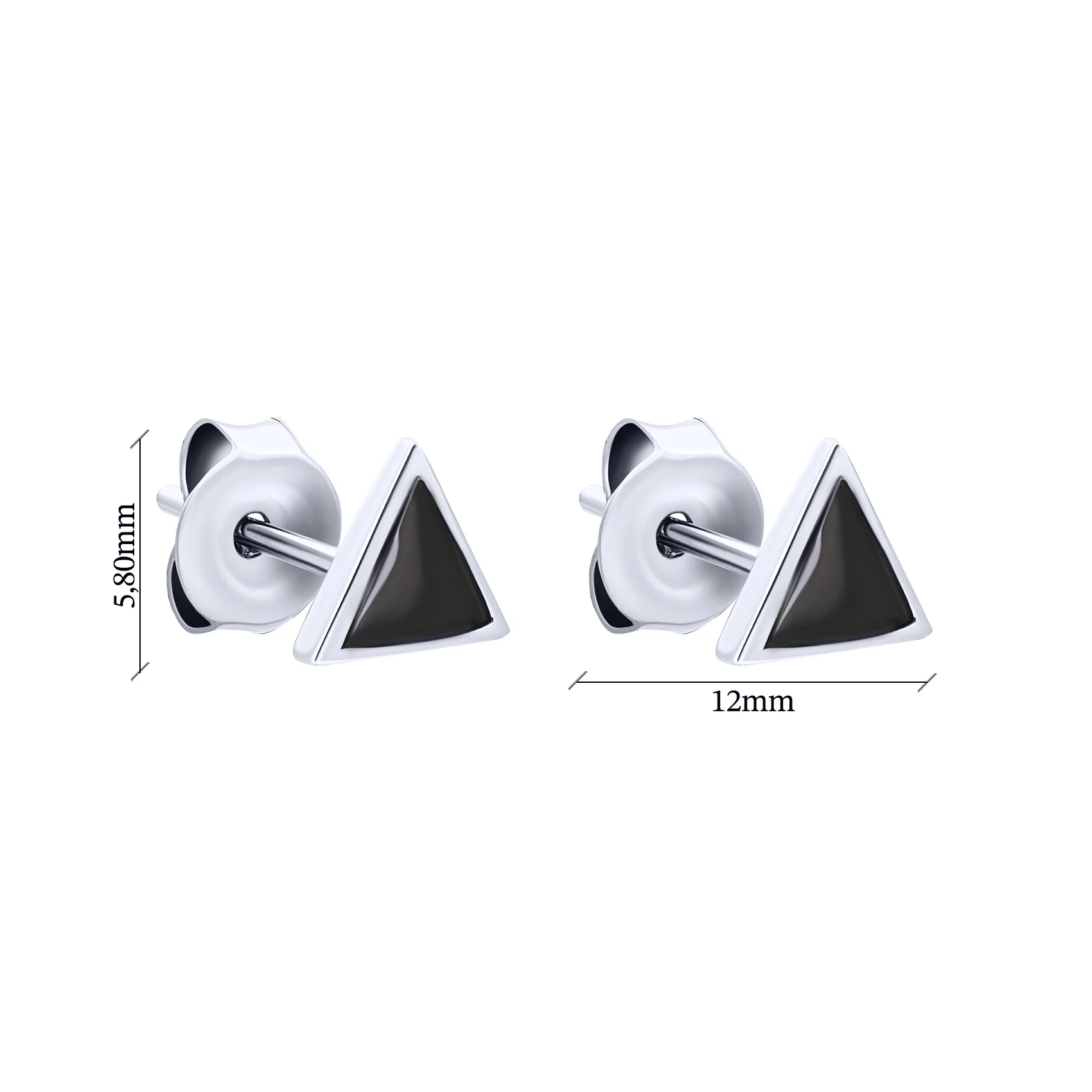 Серебряные серьги-гвоздики "Треугольники" с эмалью - 1626427