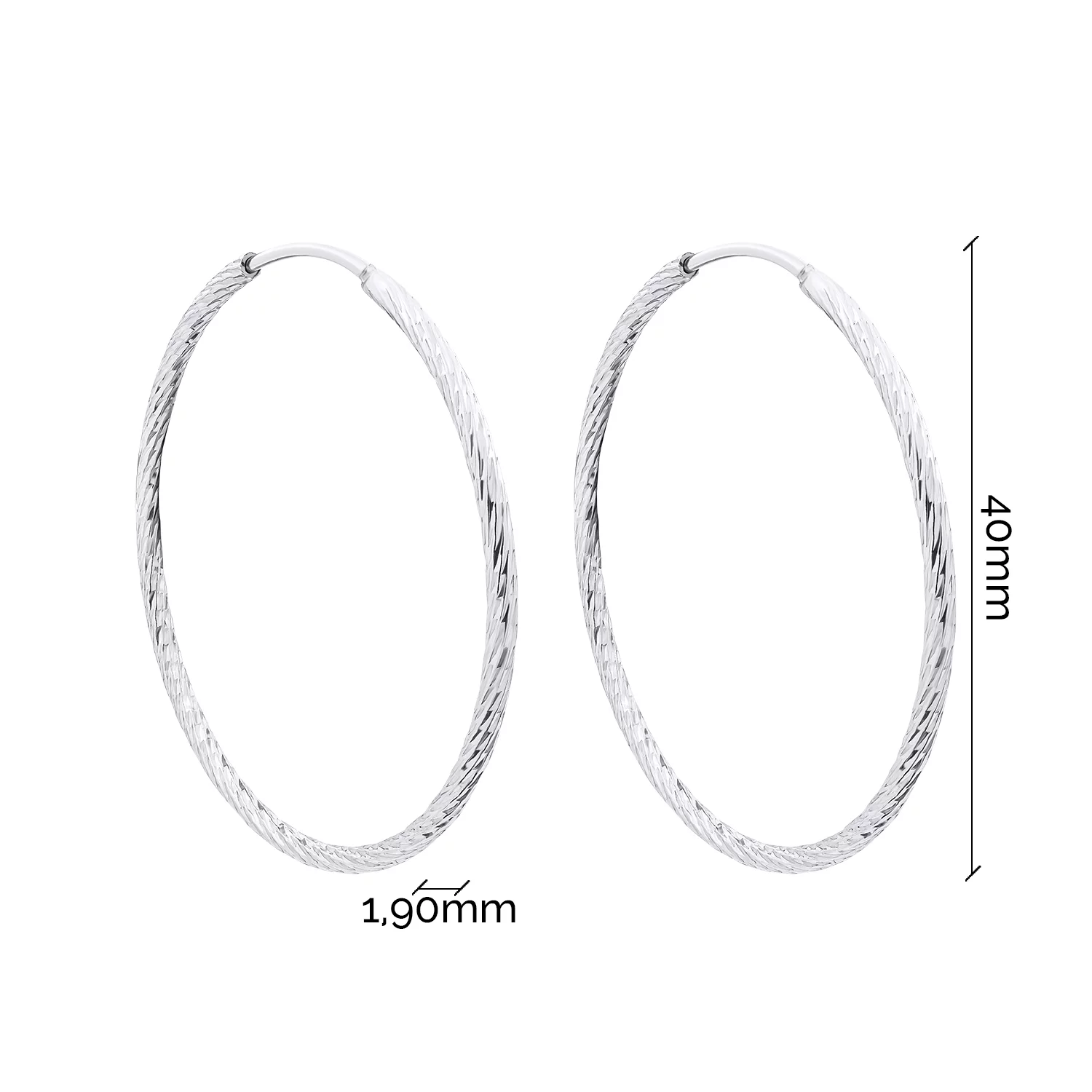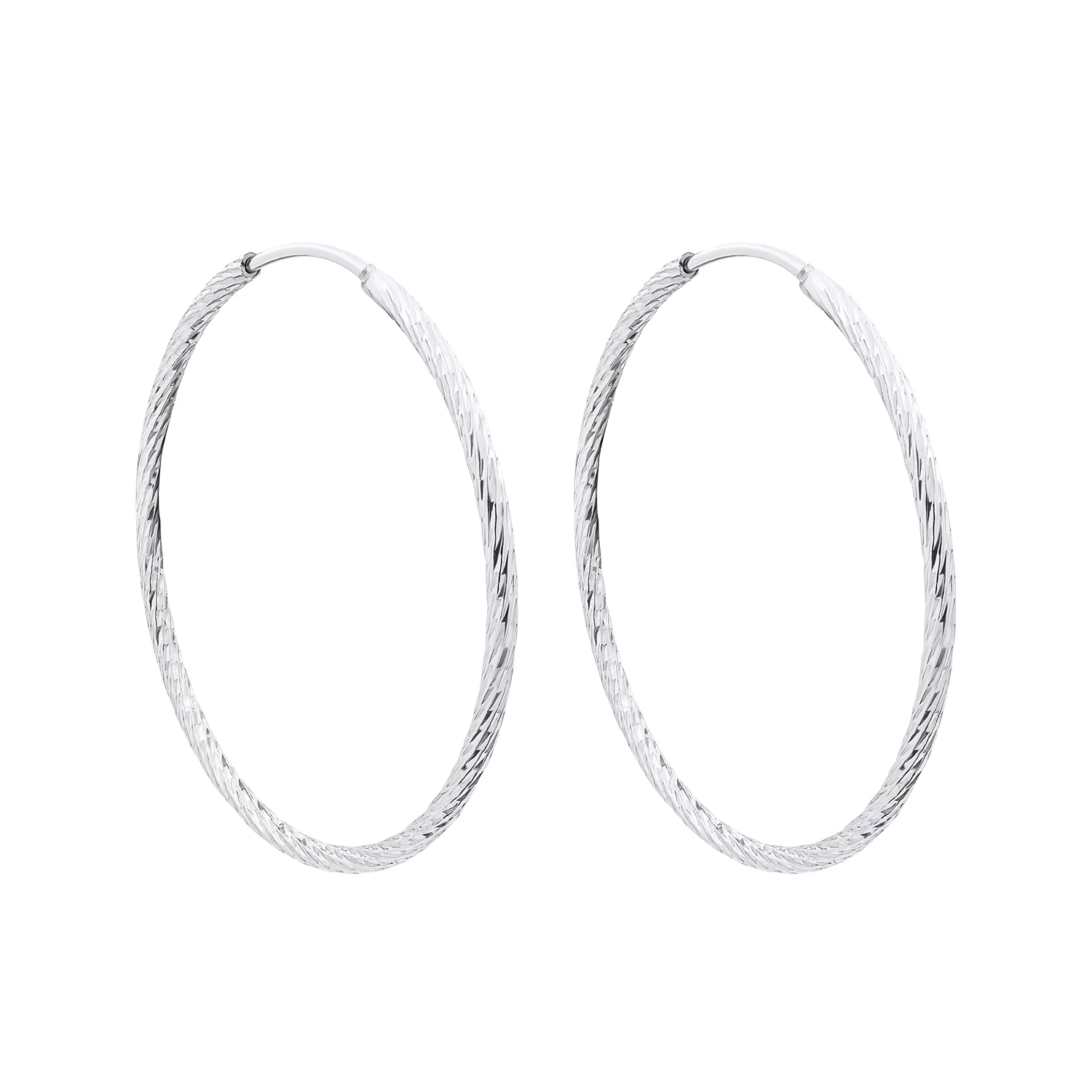 Серебряные серьги-кольца с алмазной гранью - 1522303