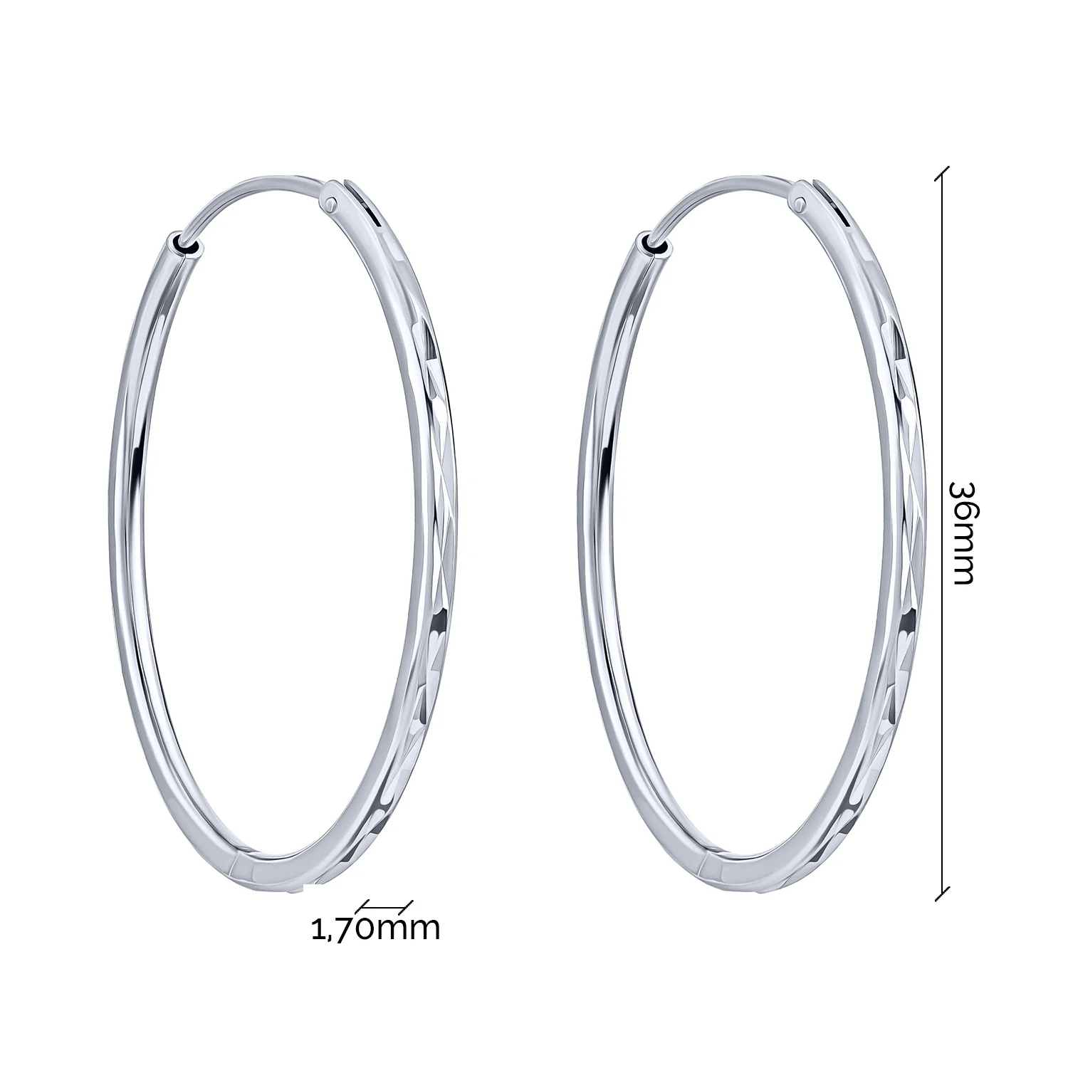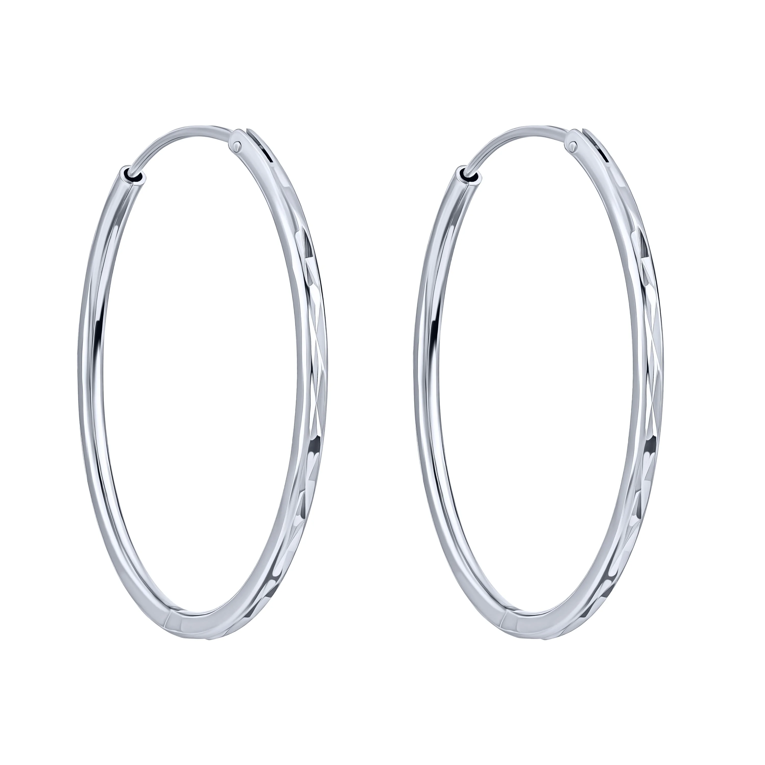 Серебряные серьги-кольца с алмазной гранью - 1989108