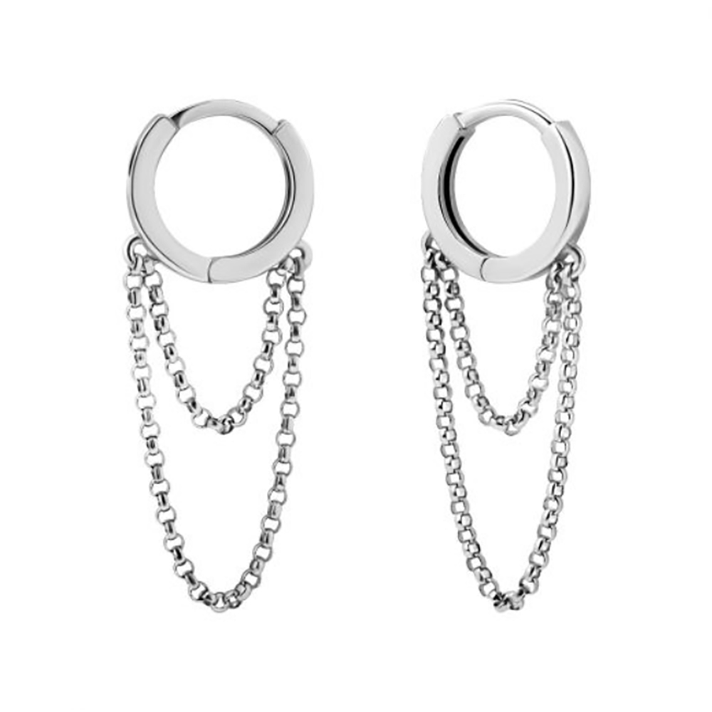 Серебряные серьги-кольца с подвесками цепочки - 961832