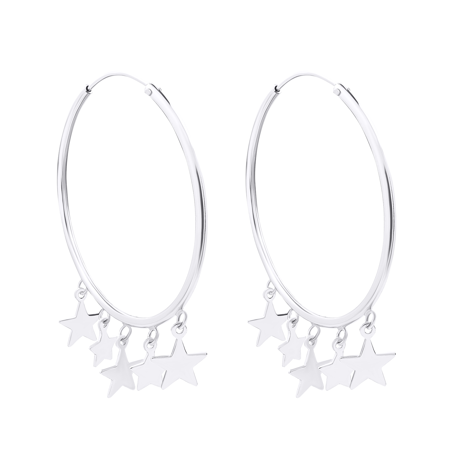 Серебряные серьги-кольца с подвесками "Звездочки" - 1520759