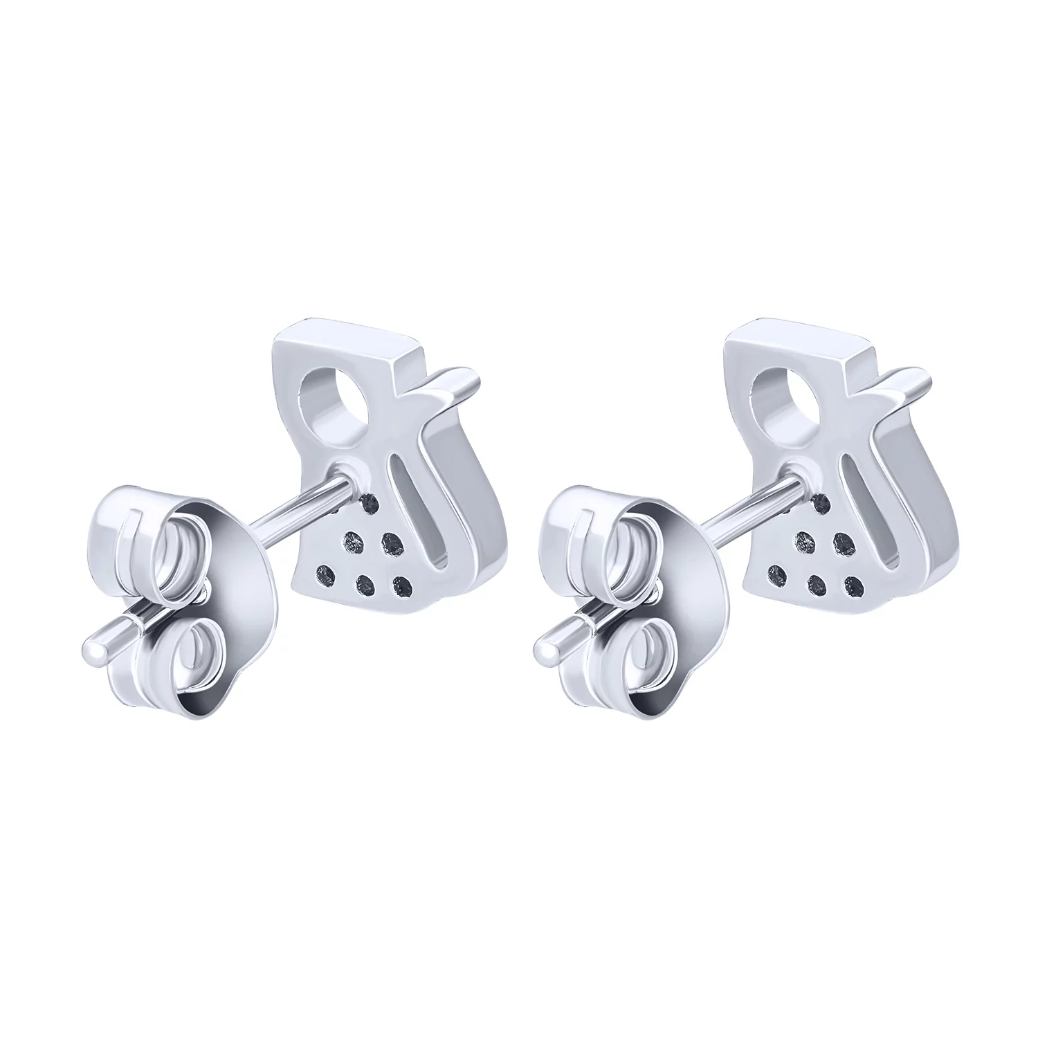 Элегантные серебряные сережки-пусеты "Бабочка" с россыпью фианитов - 1938063