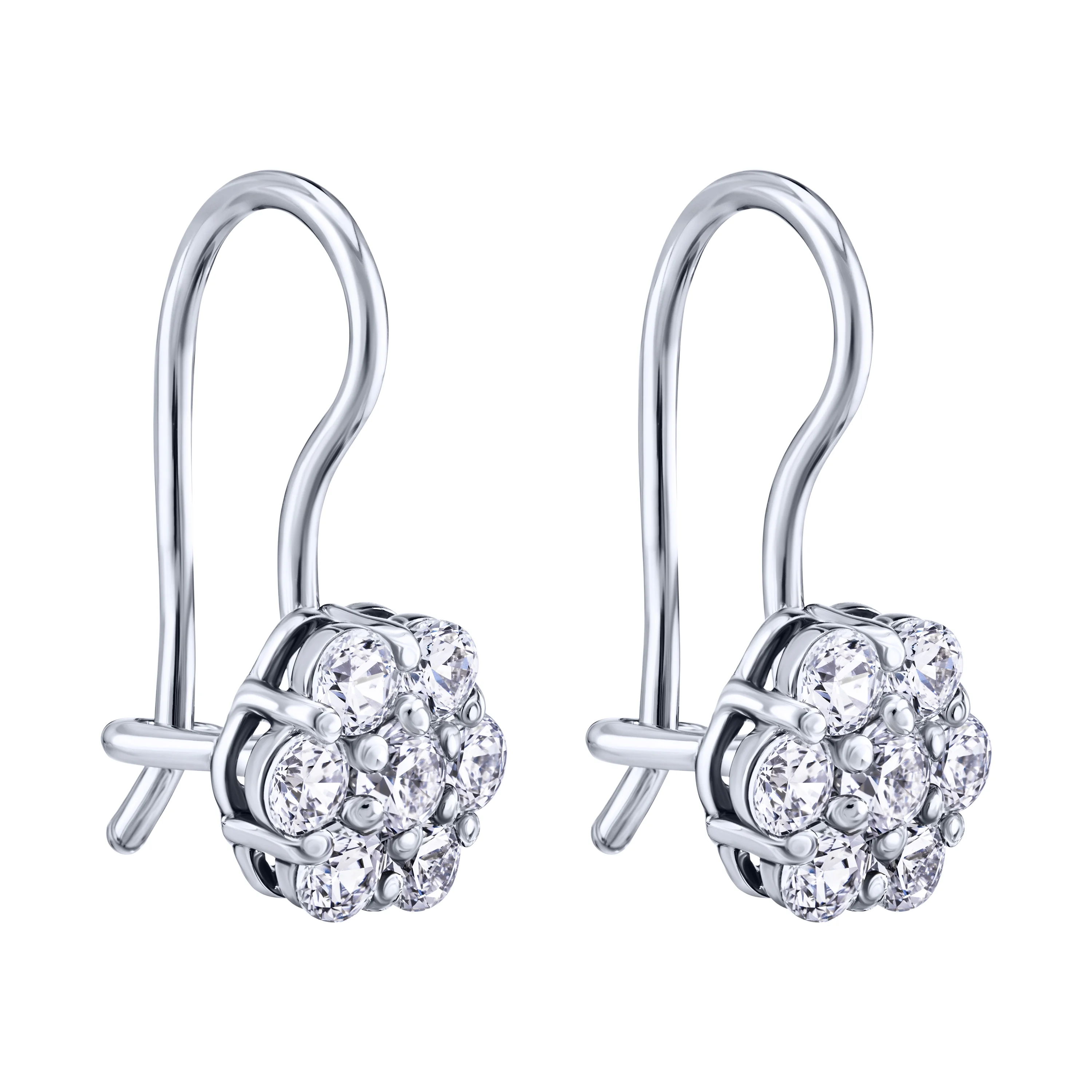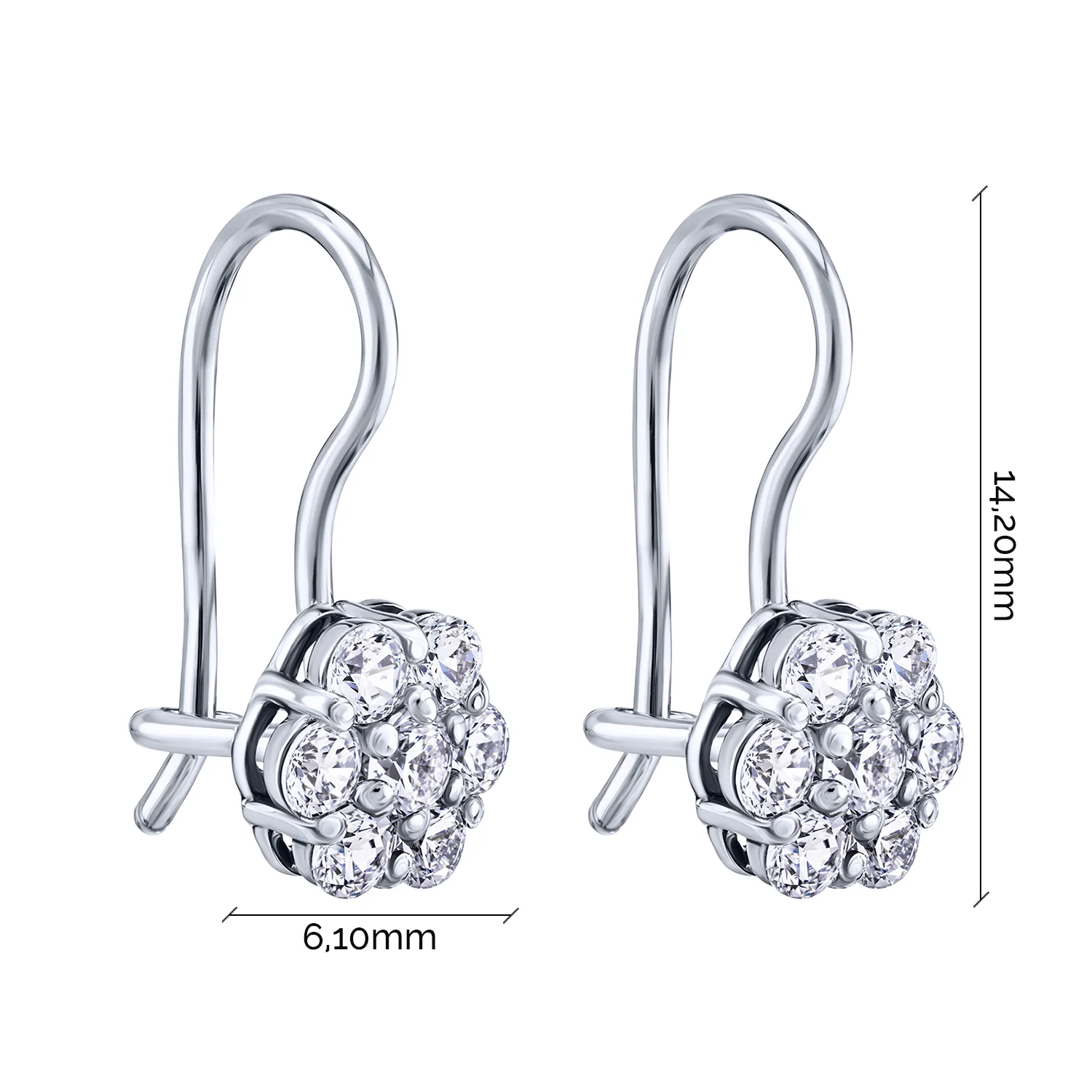 Серебряные серьги-петли "Цветок" с фианитами - 2091983