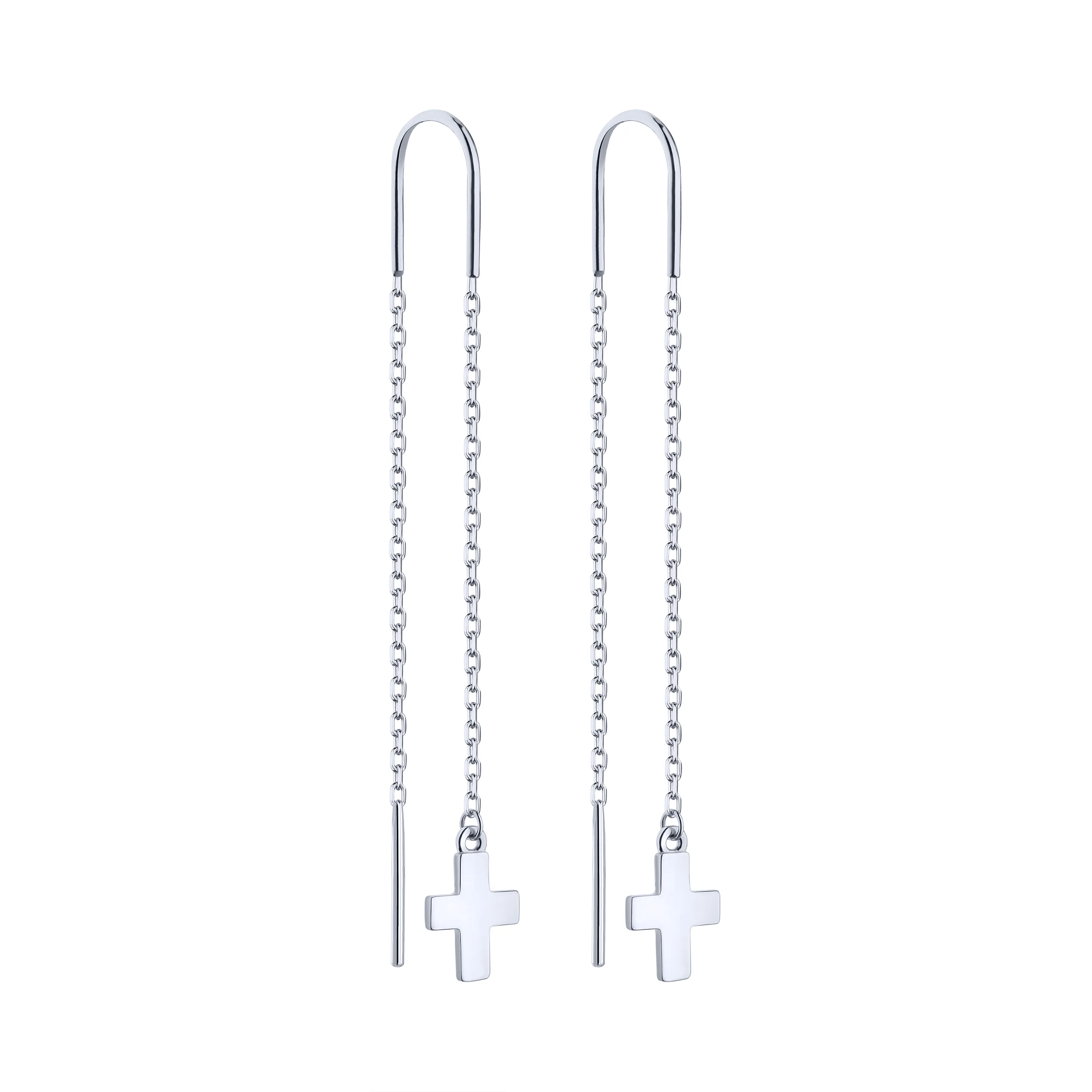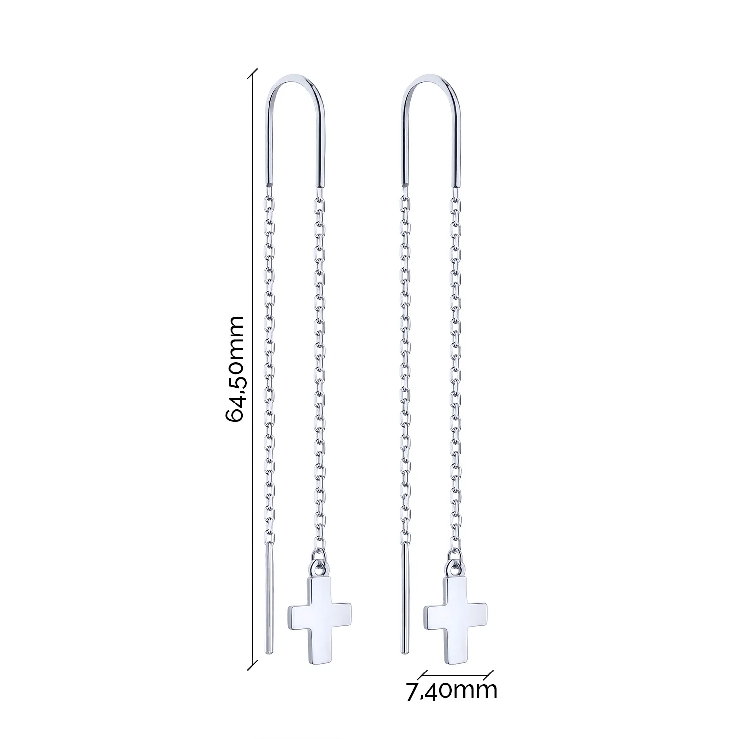Серебряные серьги формата протяжки. Дополнены декоративным крестиком, идут с готическим окрасом. Минималистические линии, универсальная подача. Идеальное качество по минимальной стоимости.