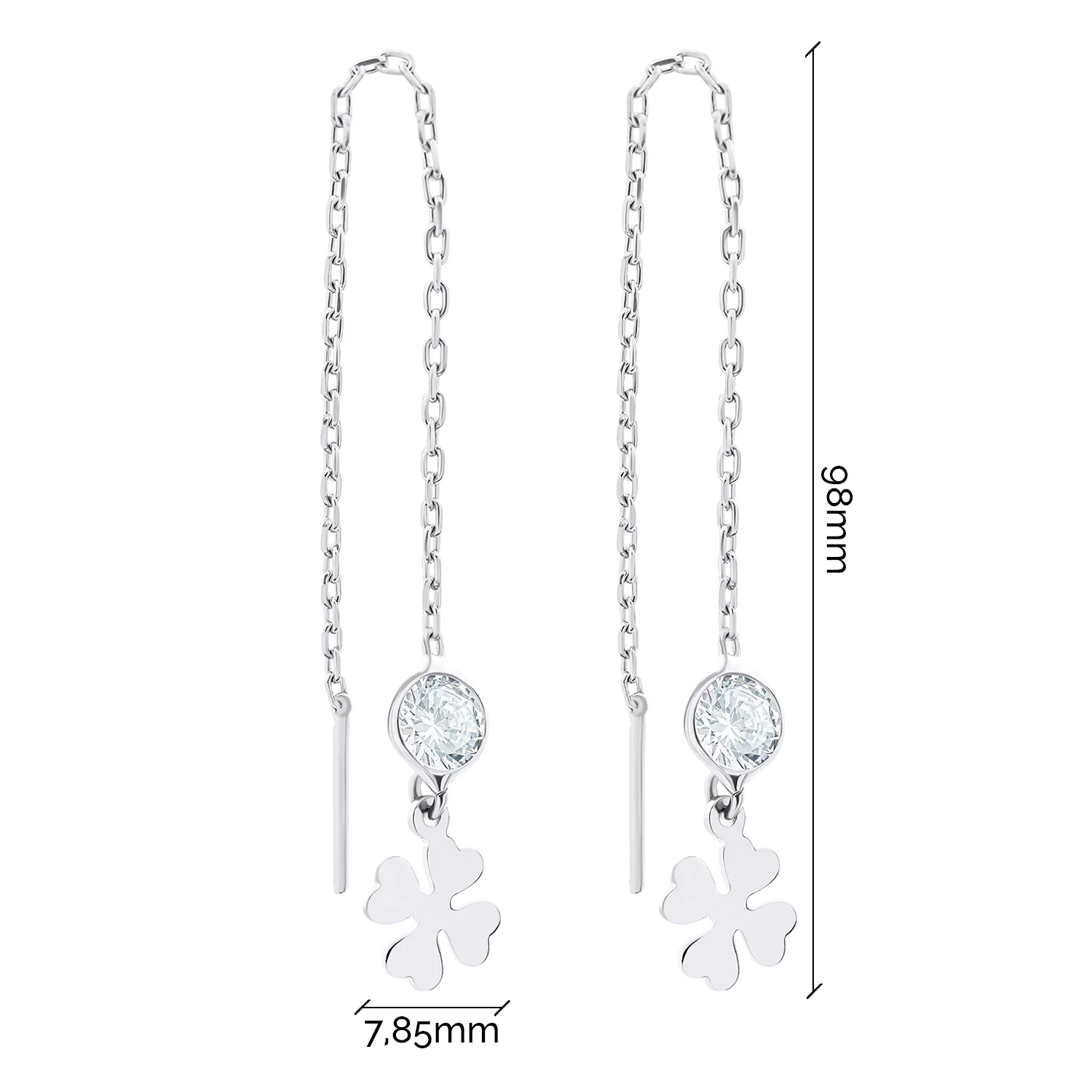 Серебряные серьги-протяжки с подвесками "Клевер" и фианитами - 1520644