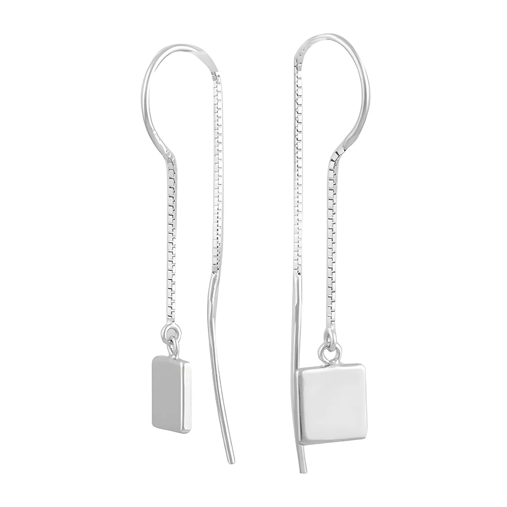 Серебряные серьги-протяжки с подвесами "Квадрат" - 1542873