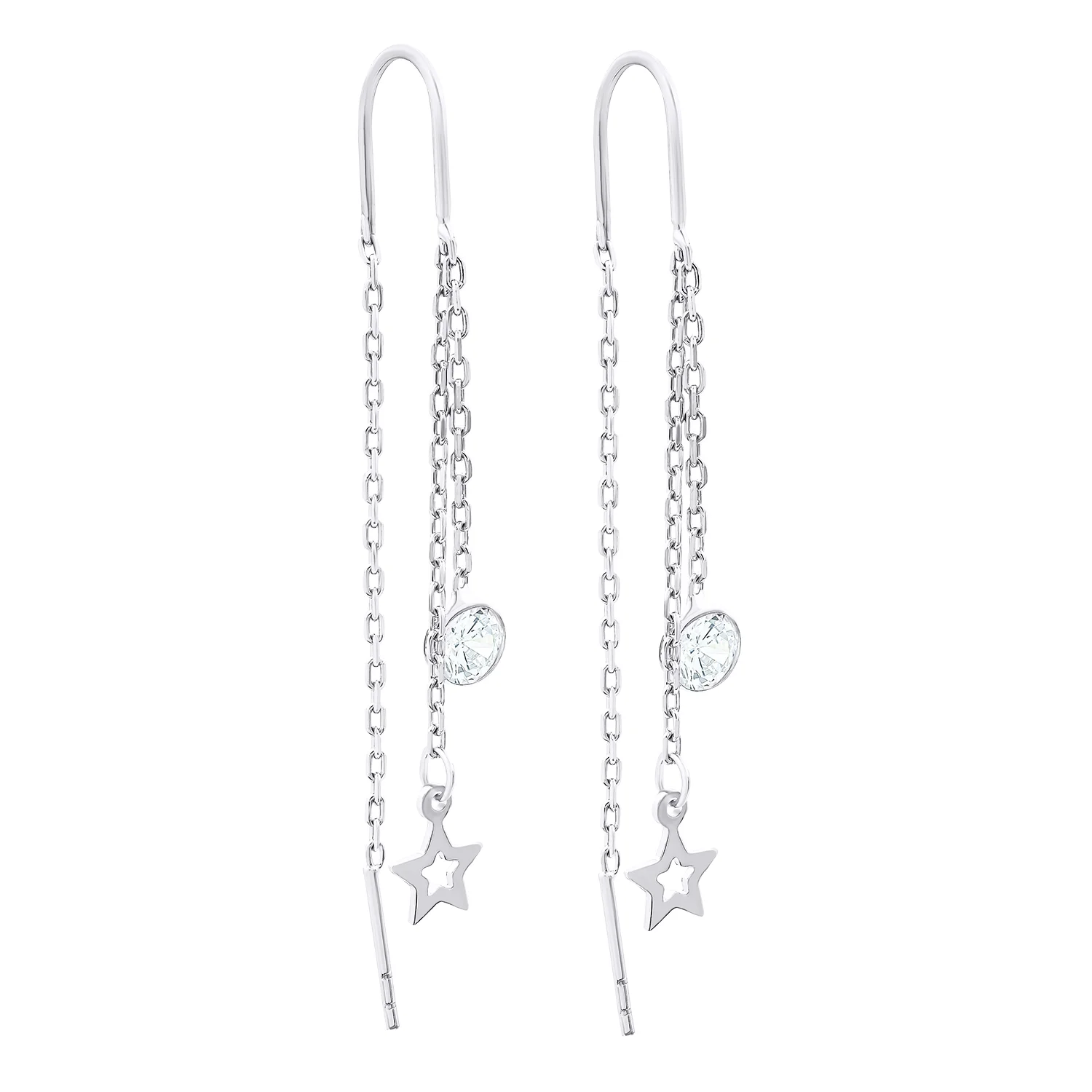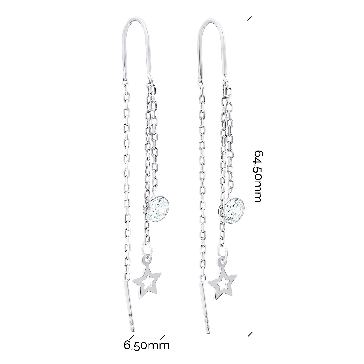 Серебряные серьги-протяжки "Звездочки" с подвесками и фианитами - 1520645