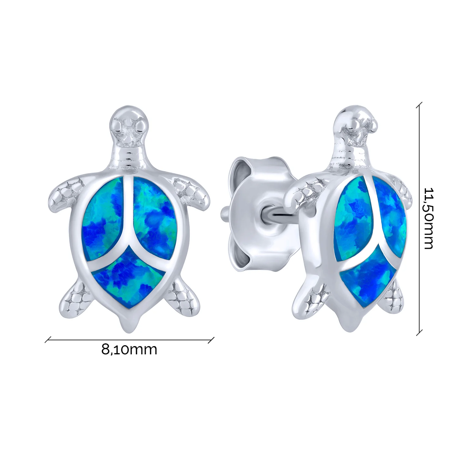 Серебряные серьги-пусеты "Черепаха" с опалом - 2090529