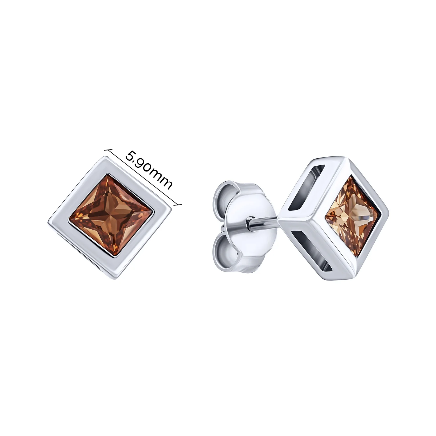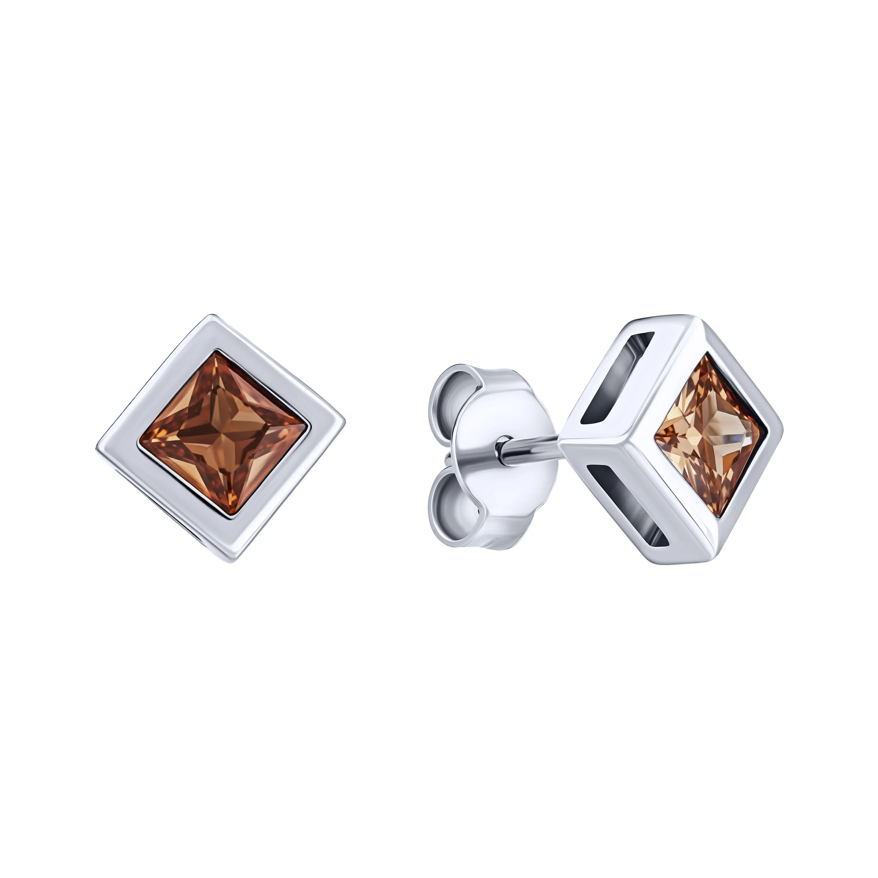 Серебряные серьги-пусеты "Квадрат" с фианитом - 2167979