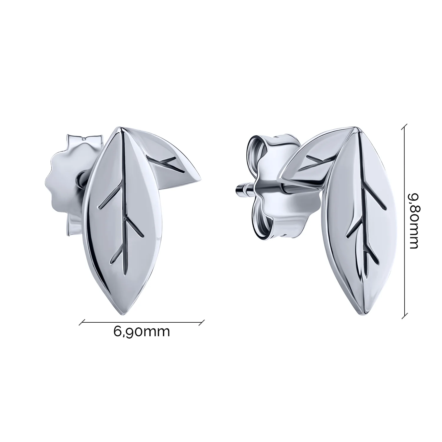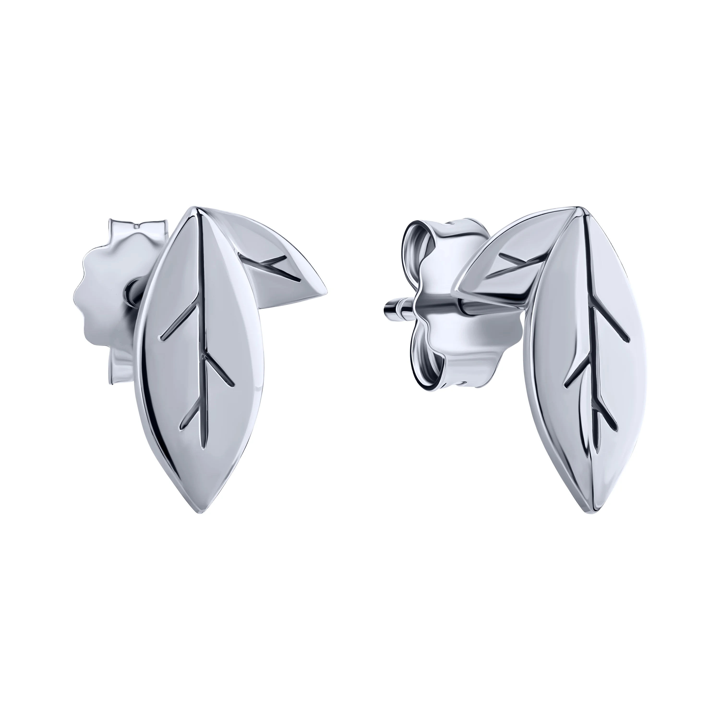 Серебряные серьги-пусеты "Листочки" - 2095683