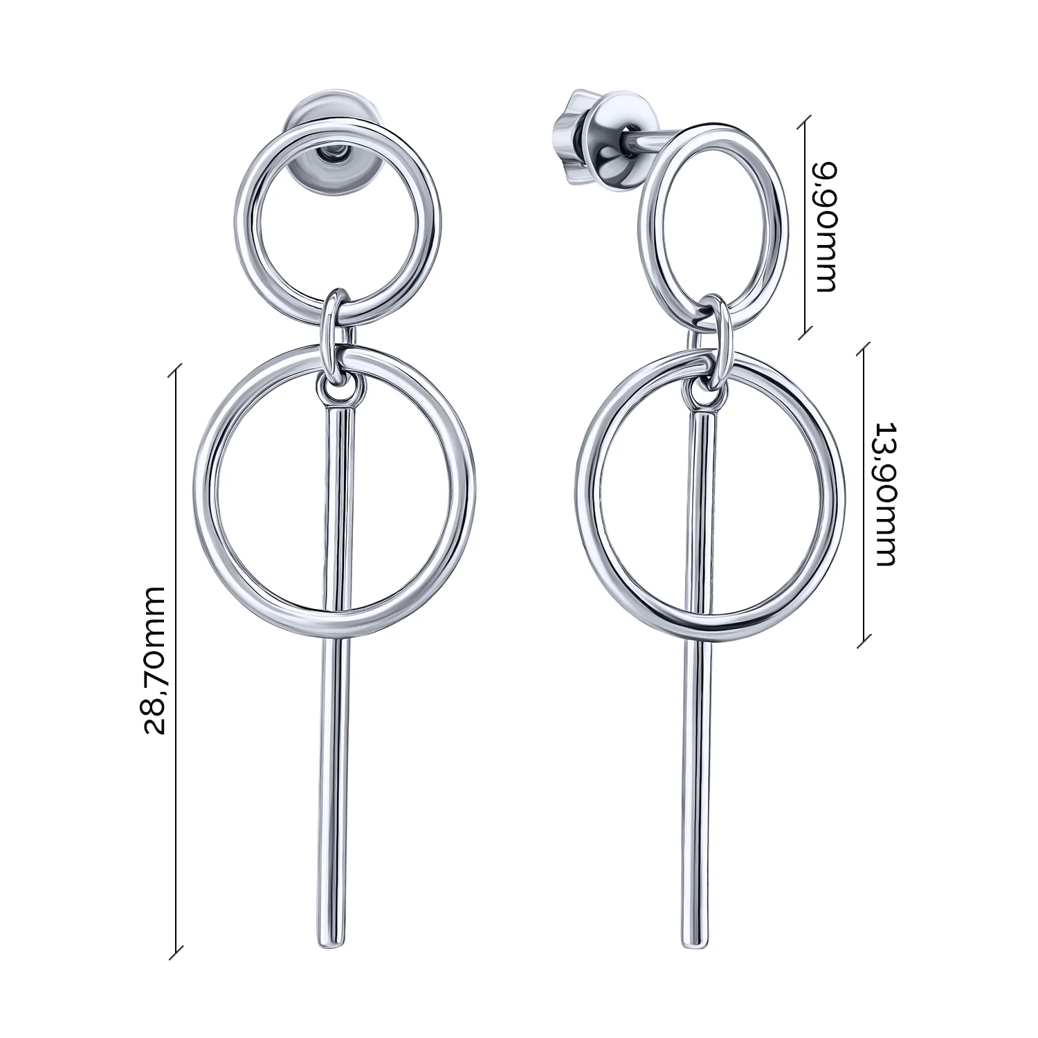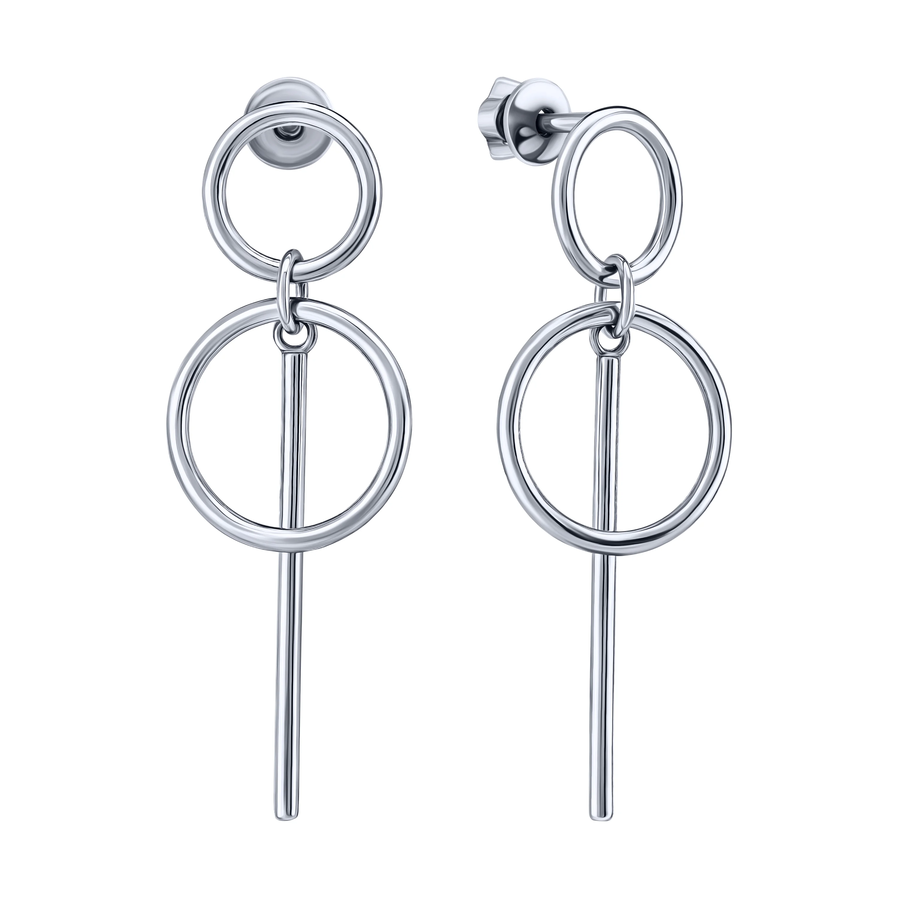 Серебряные серьги-пусеты с подвесами кольцами - 2083477