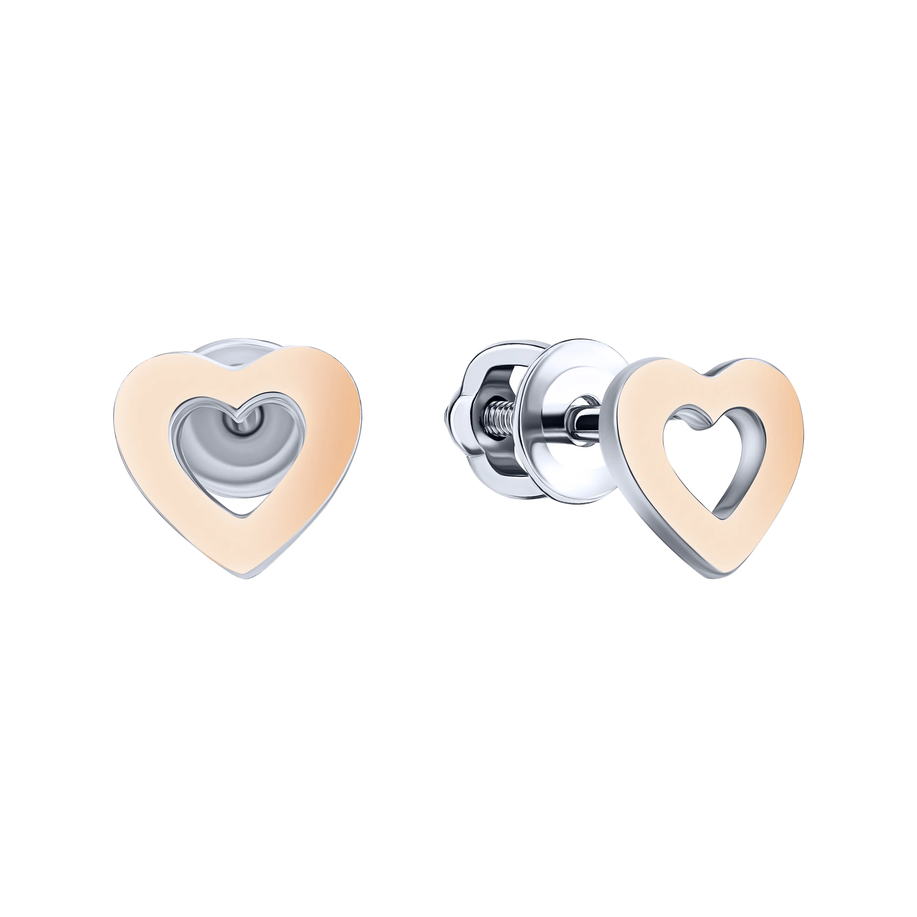 Серебряные серьги-пусеты "Сердце" с позолотой - 2182440