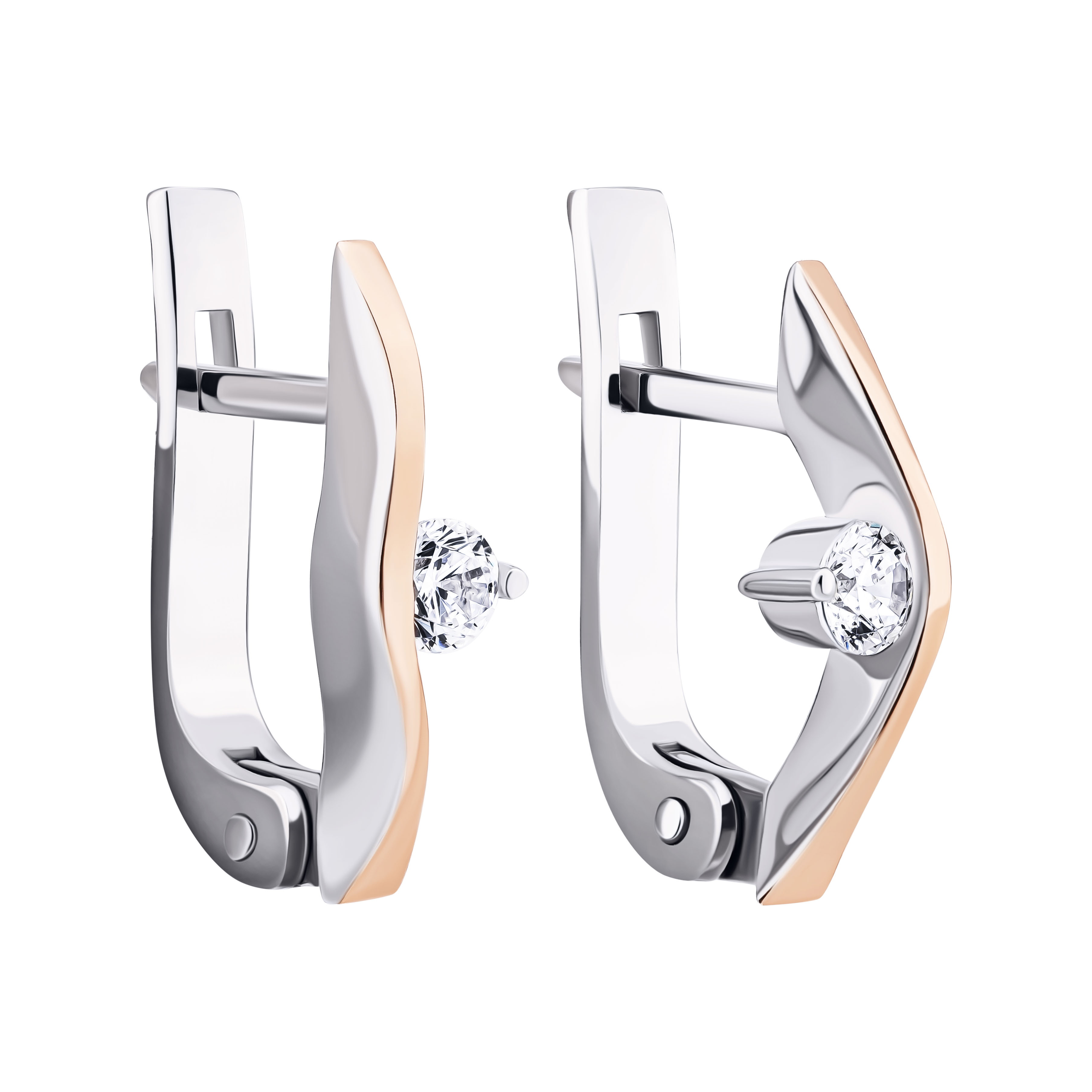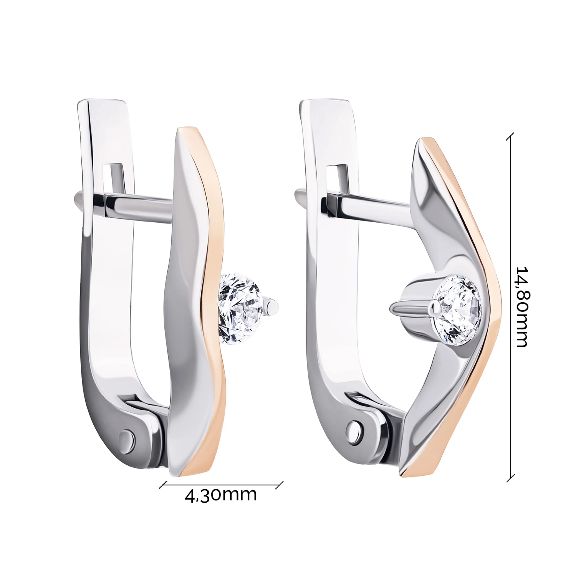 Серебряные серьги с золотой накладкой и фианитом - 2112365