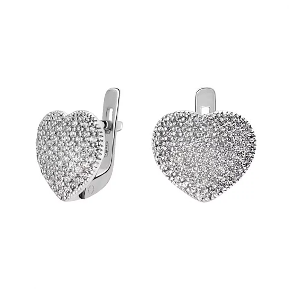 Серебряные сережки с "Сердце" с фианитом - 964137