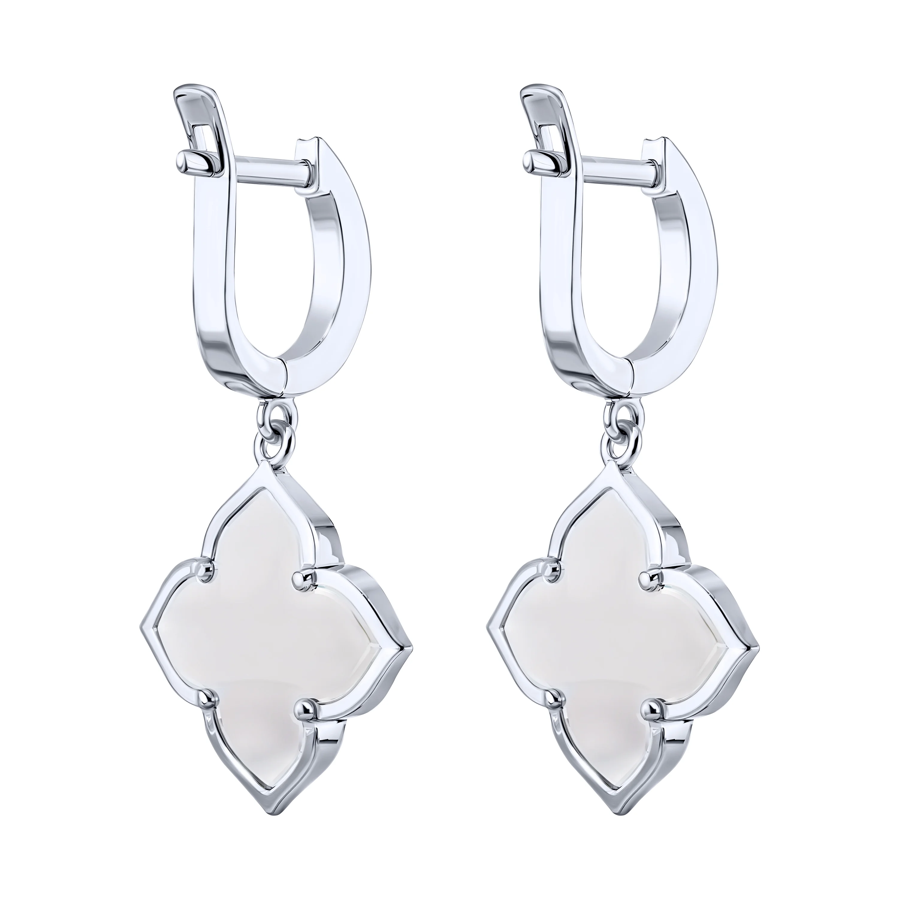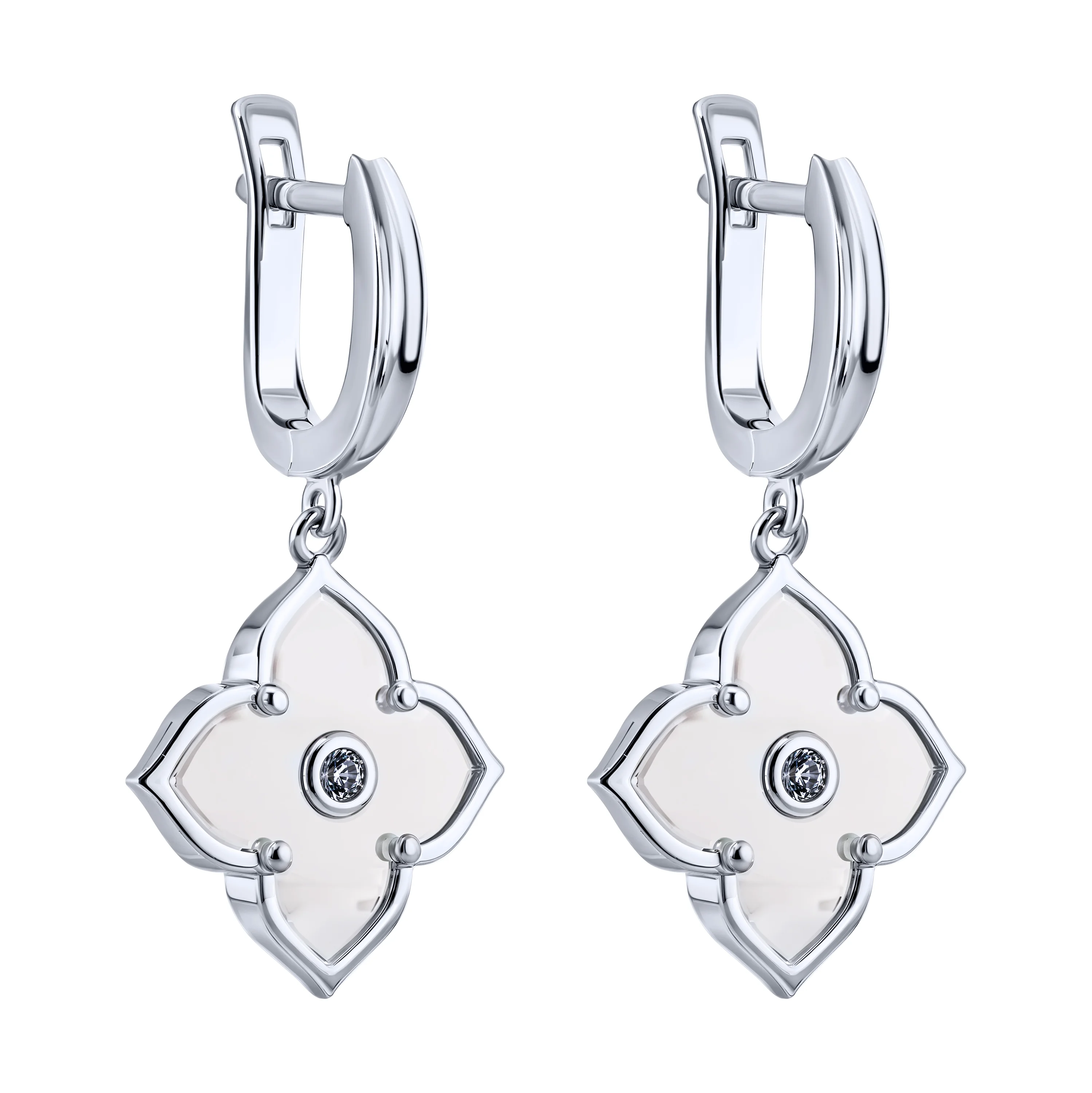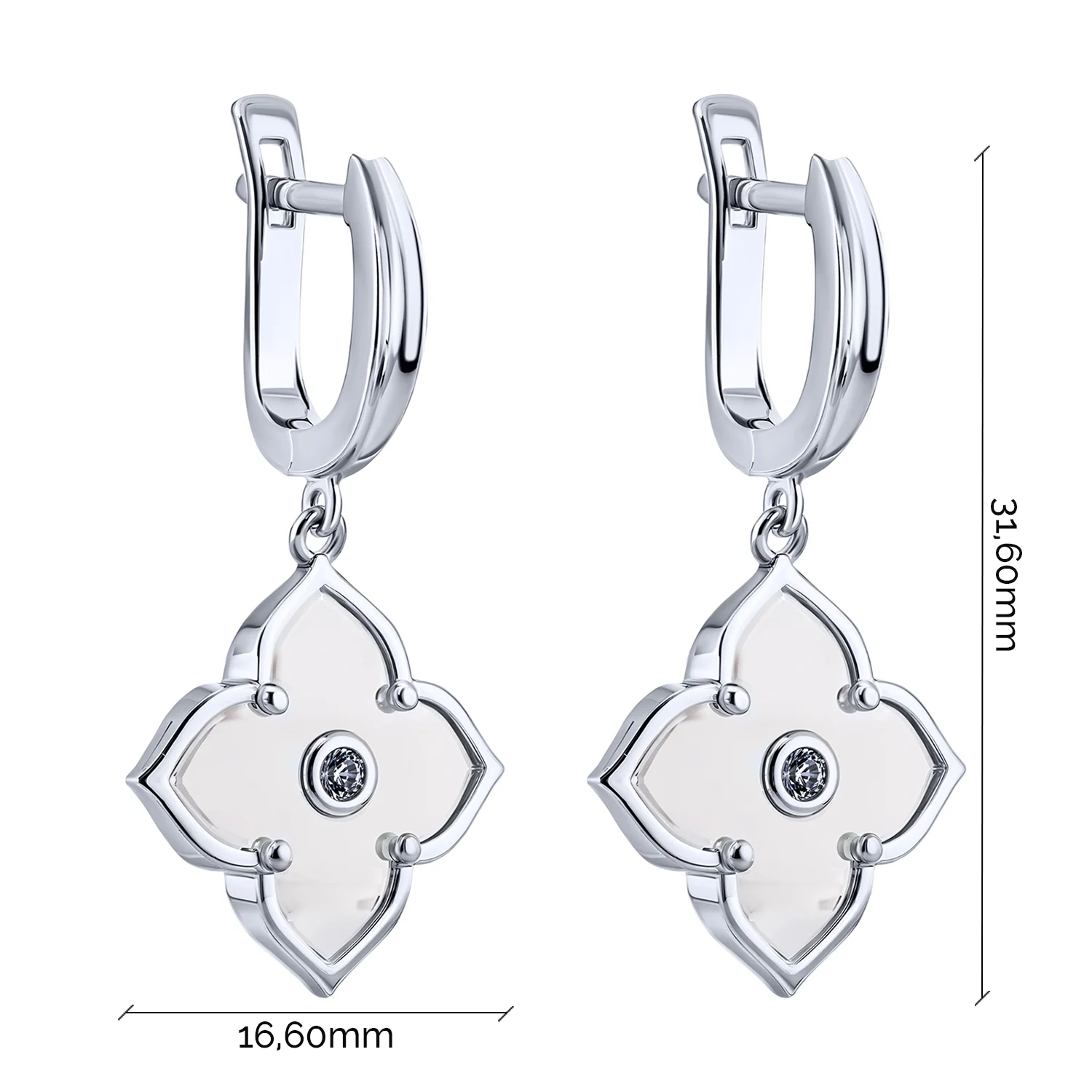 Серьги из серебра с подвесами "Цветок" с керамической и фианитом - 2101136