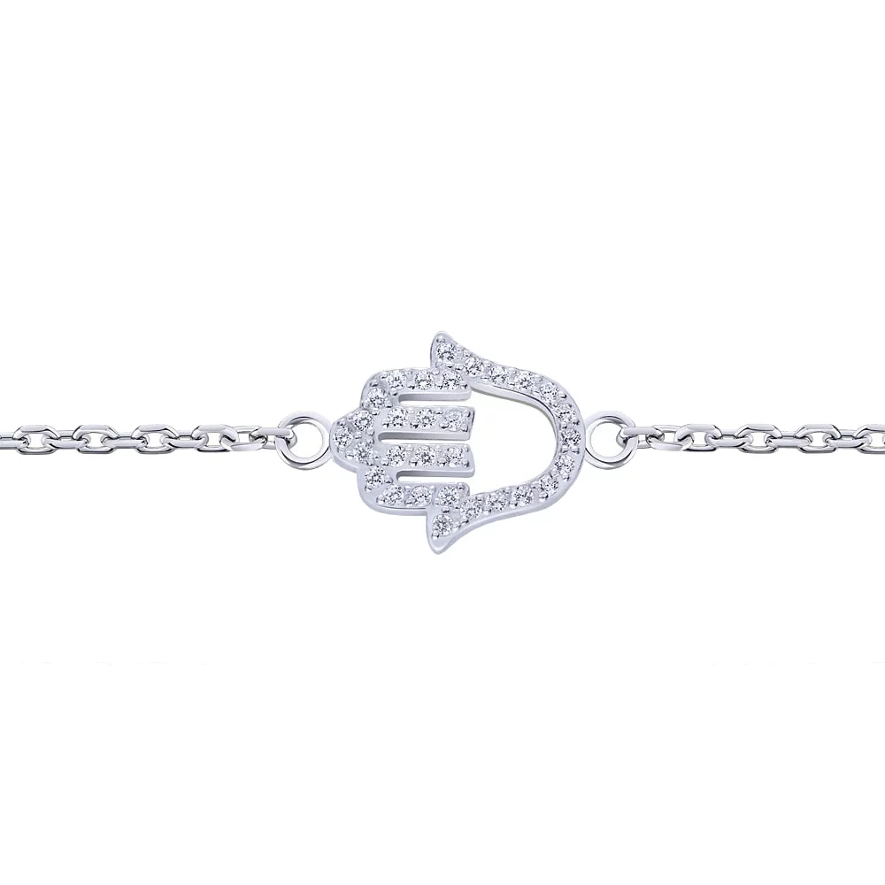 Стильный двойной серебряный браслет "Звезда" с якорным плетением и фианитами - 1939932