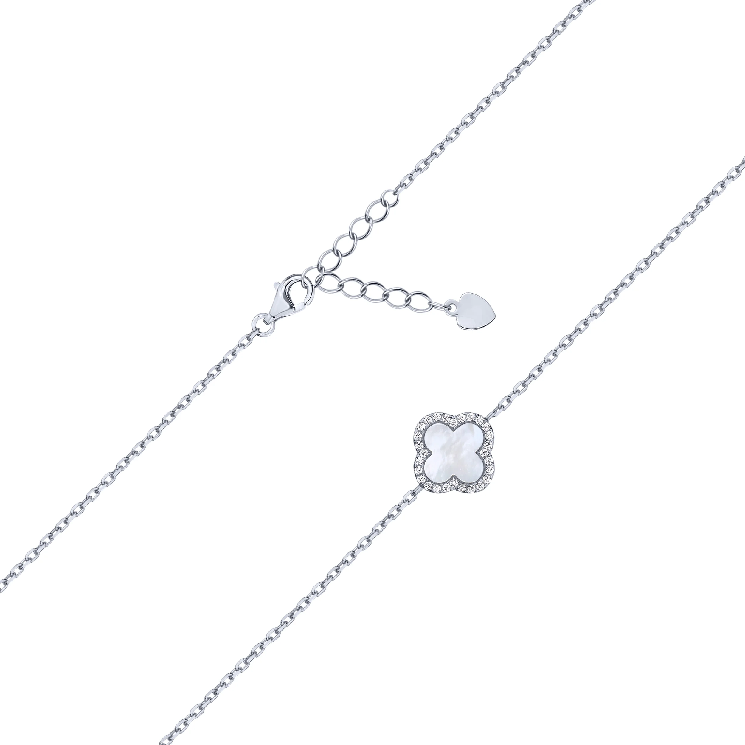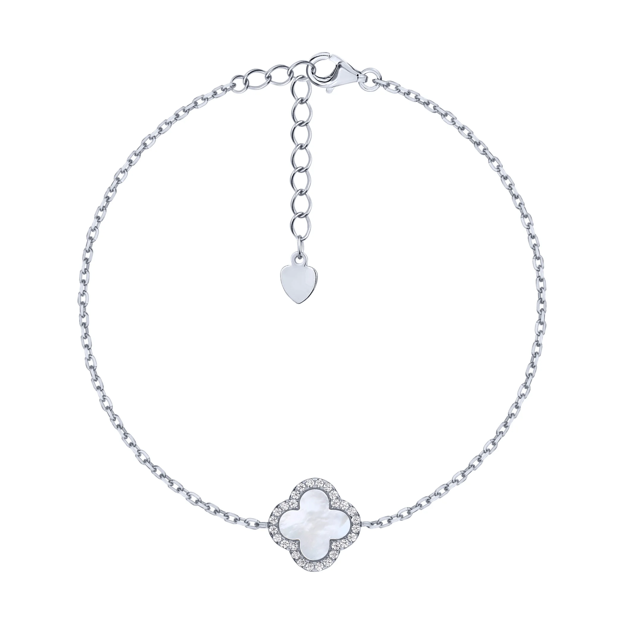 Серебряный браслет "Клевер" с перламутром и фианитами плетение якорь - 2170997