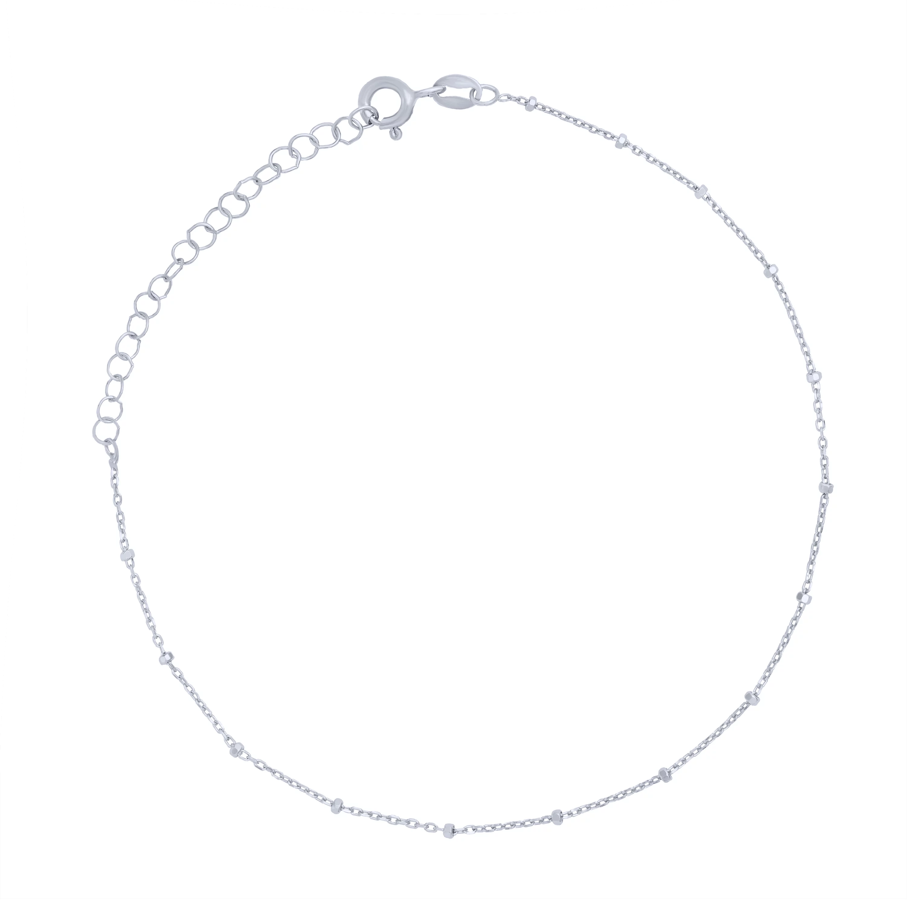Женский браслет на ногу из серебра 925 пробы — уникальное дополнение утонченного образа. Ювелирное изделие выполнено в стиле якорного плетения. Основная часть представляет собой тончайшую цепочку, где мелкие звенья через определенное расстояние чередуются с шариками. Миниатюрное колечко шпрингеля с одним подвижным участком — вид замка, отличающегося защищенностью от случайного расстегивания. Такой браслет на ногу можно сочетать с разной летней обувью. Он внесет многогранность и изысканность в повседневный или праздничный образ представительницы прекрасного пола.