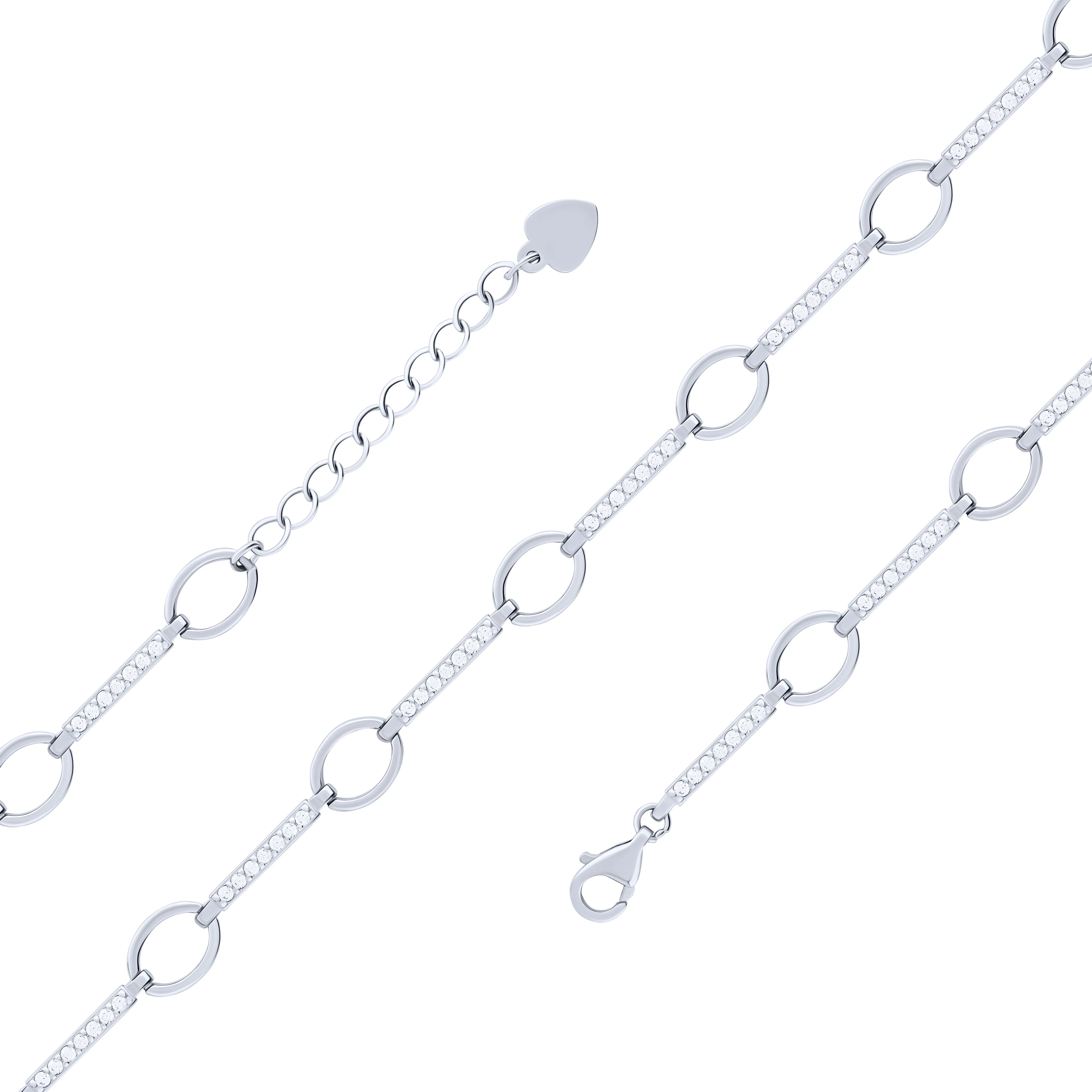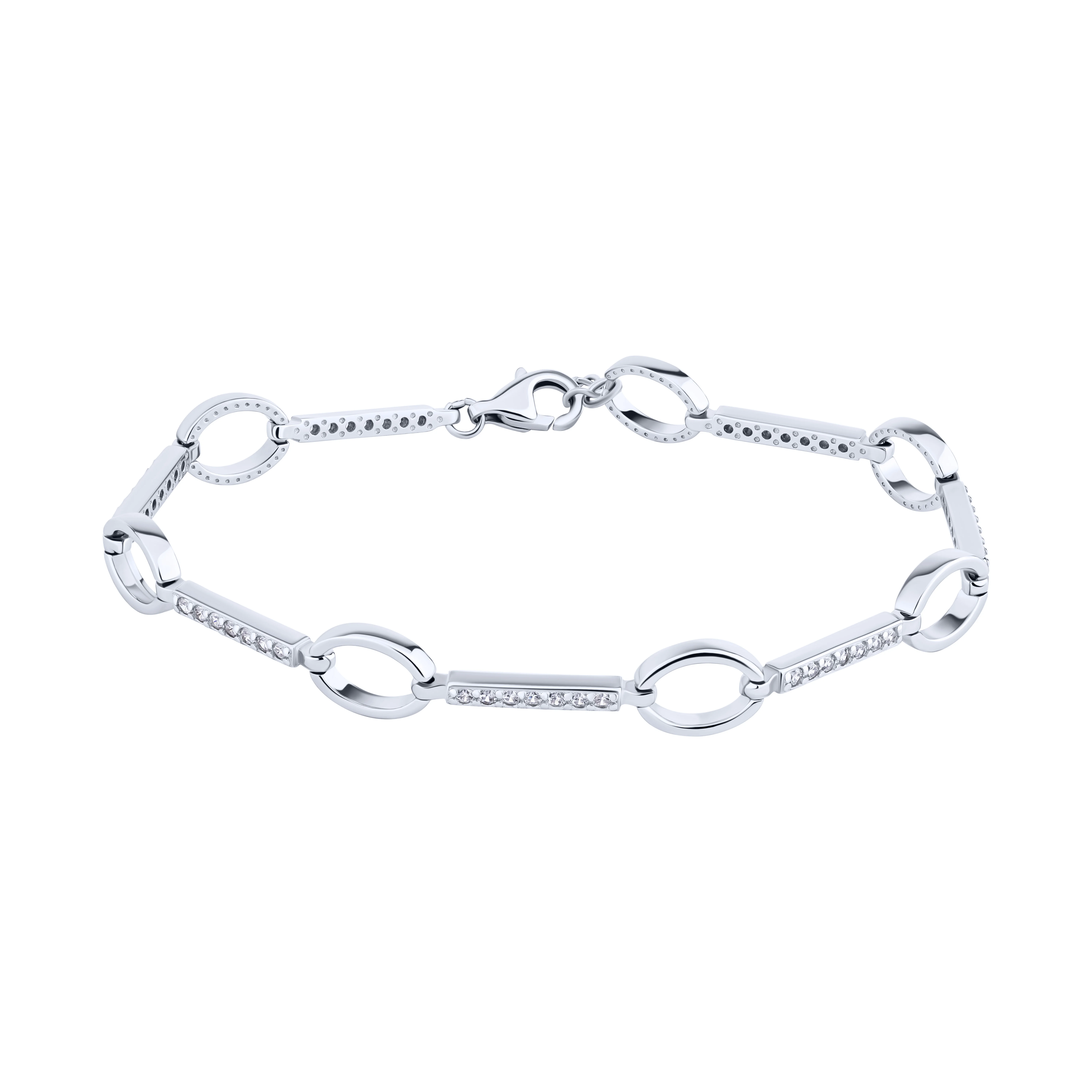 Серебряный браслет с фианитами в фантазийном плетение - 2127094