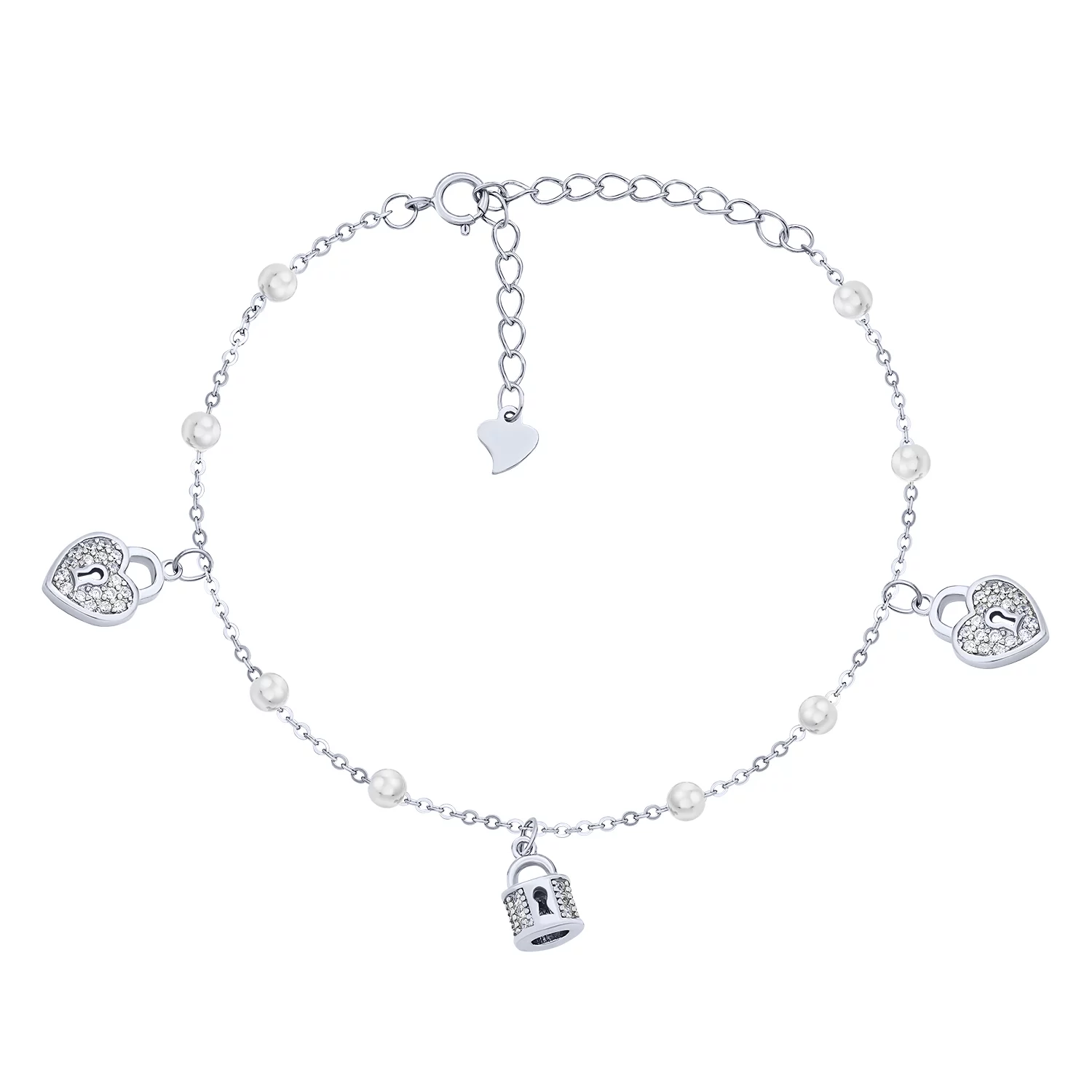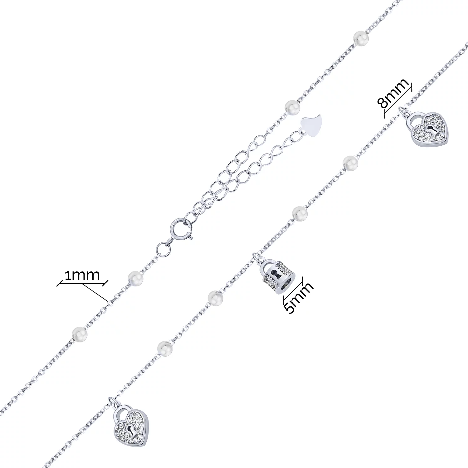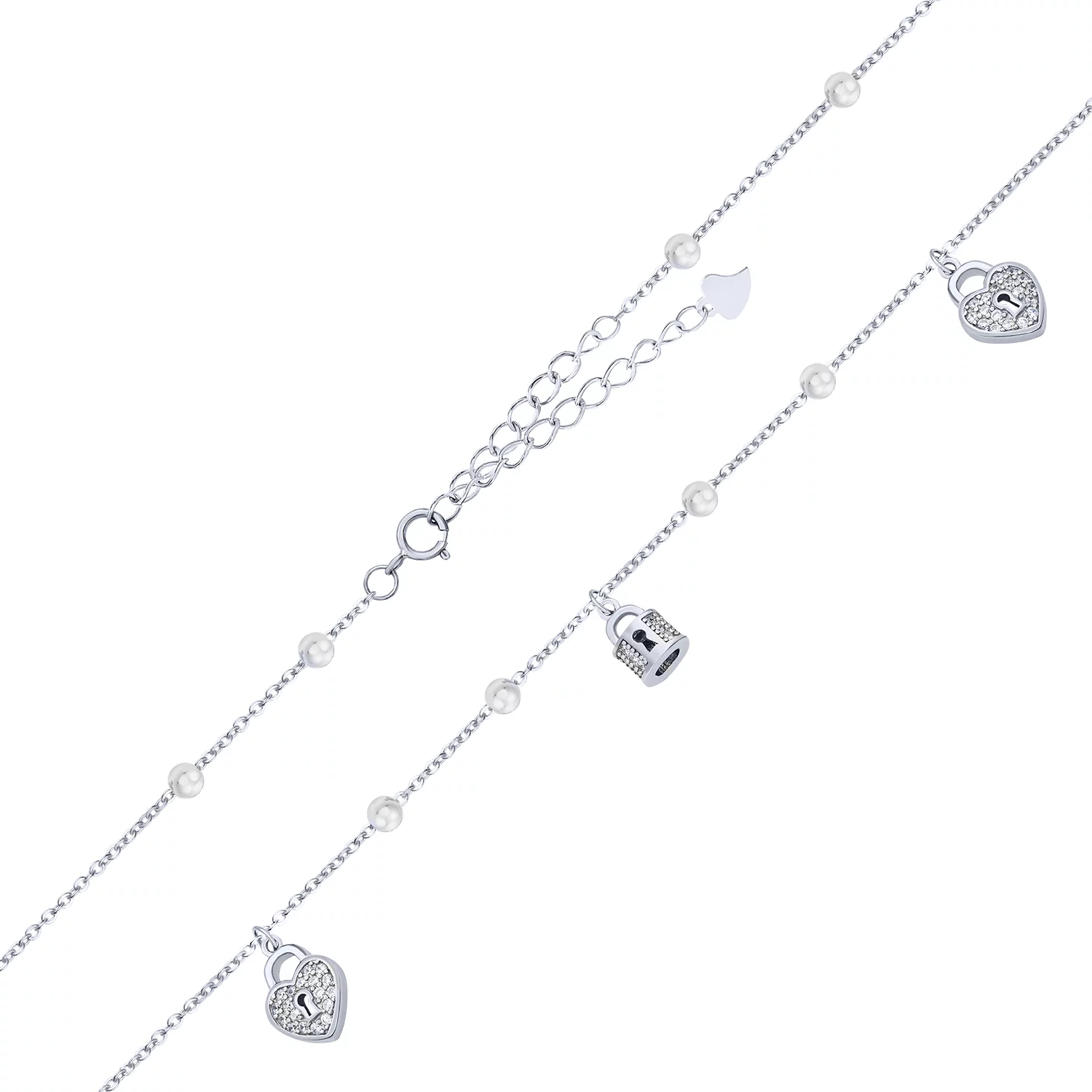 Серебряный браслет с подвесами "Сердце" с венецианским плетением - 1957315