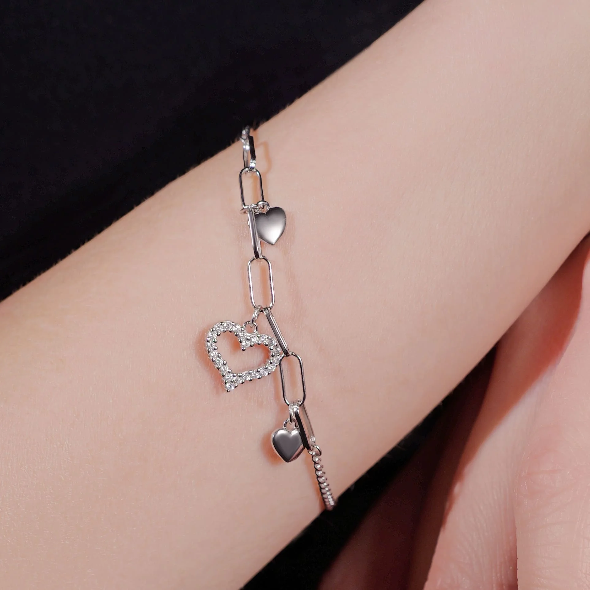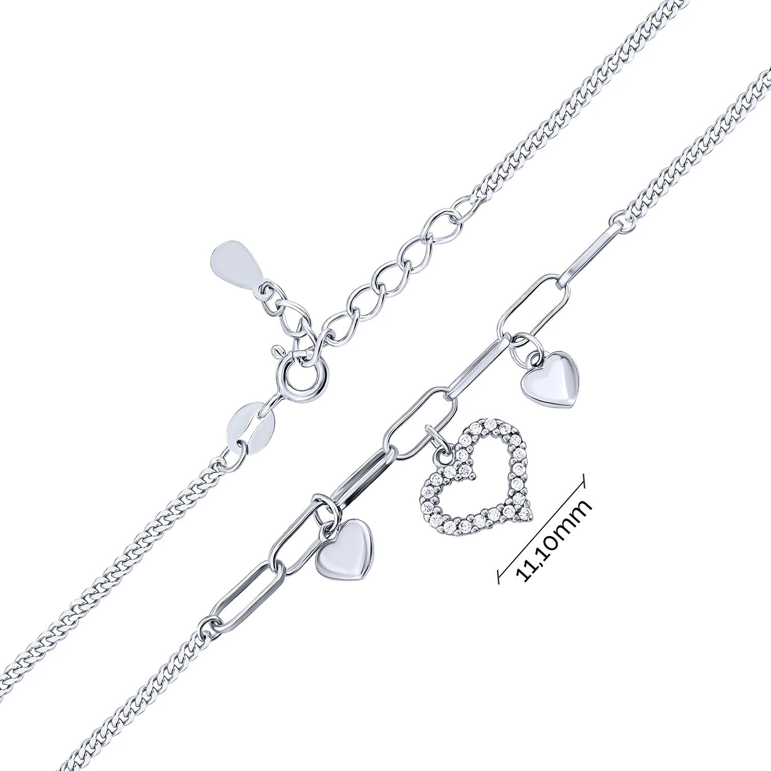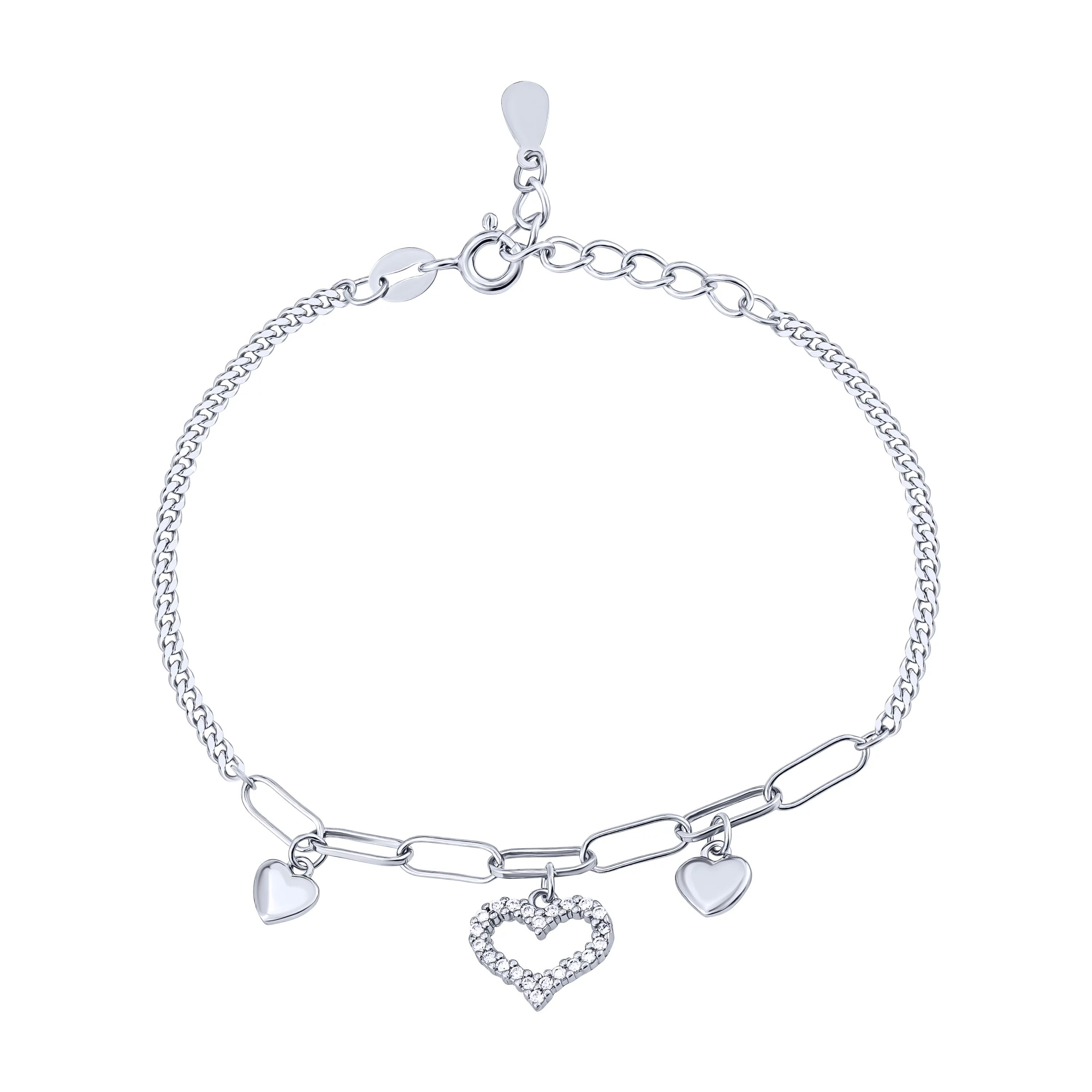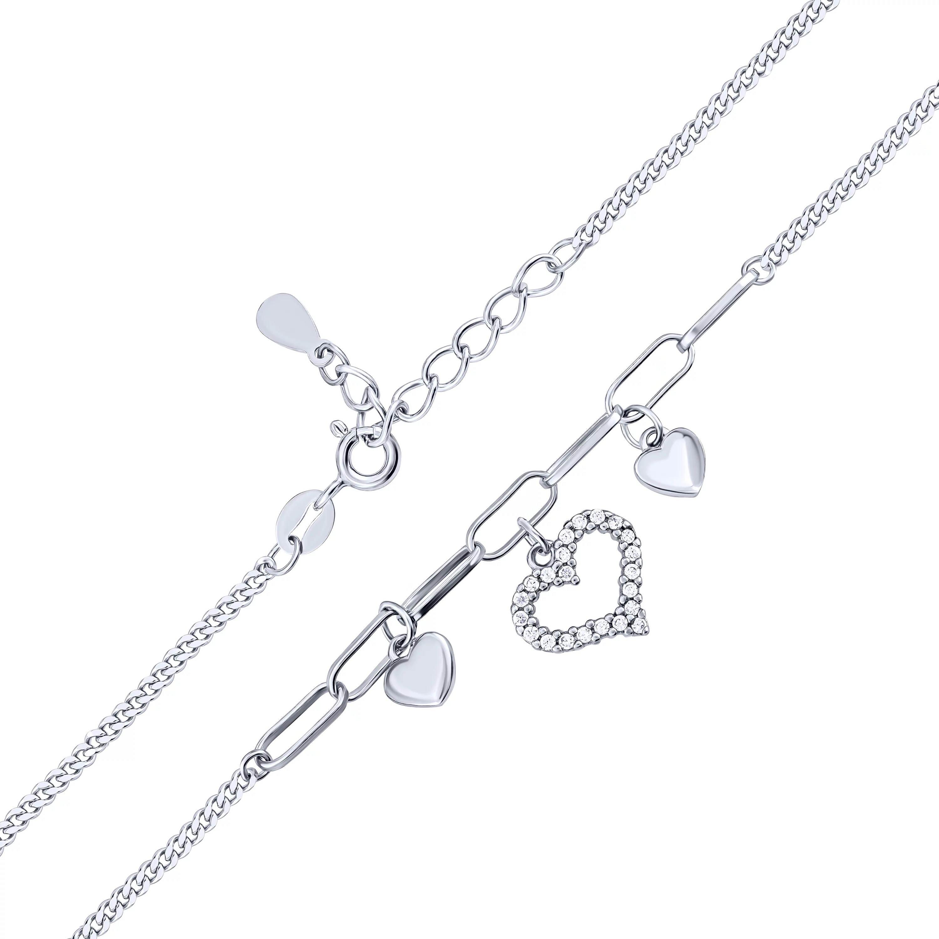 Серебряный браслет с подвесами "Сердечки" с фианитами плетение якорь - 1612545