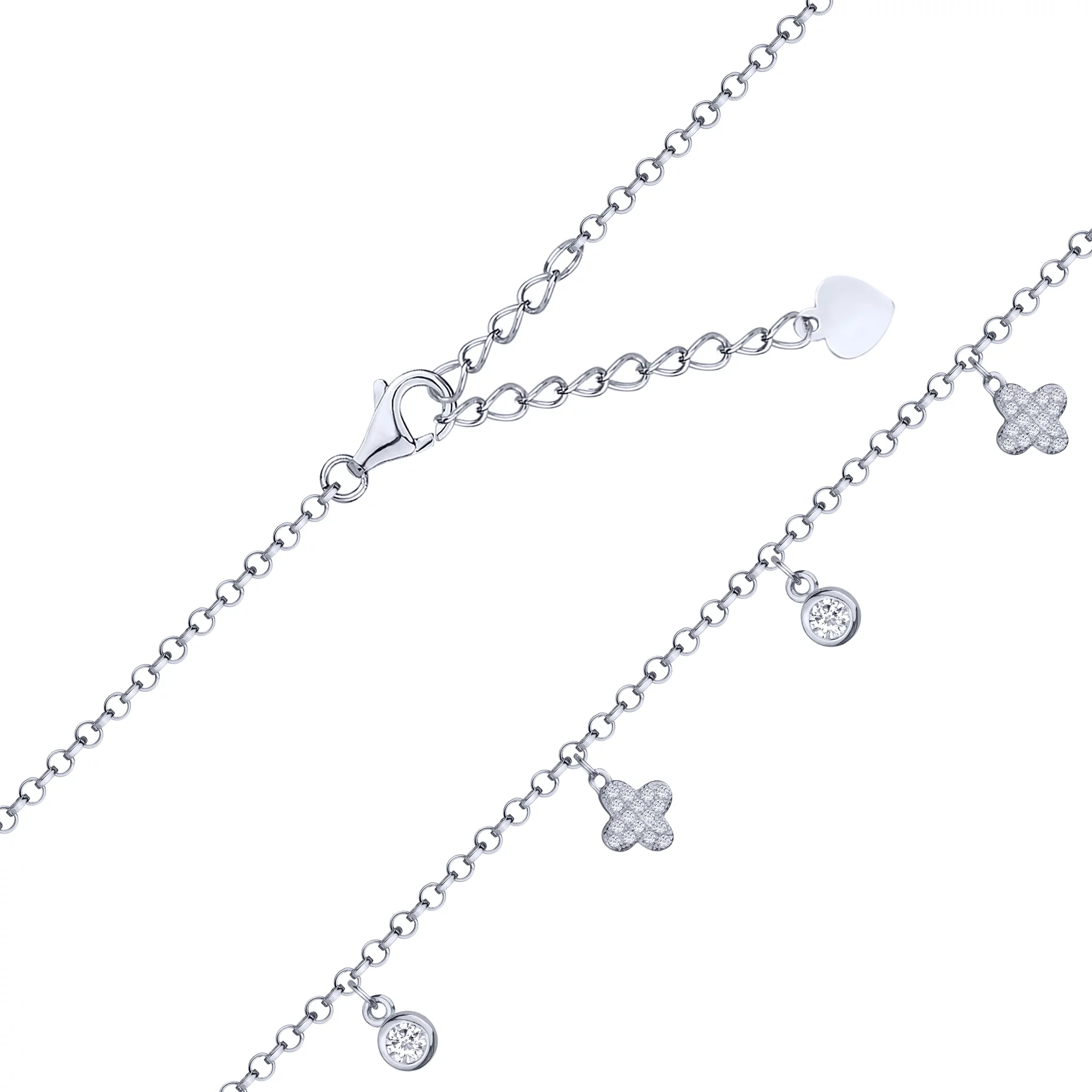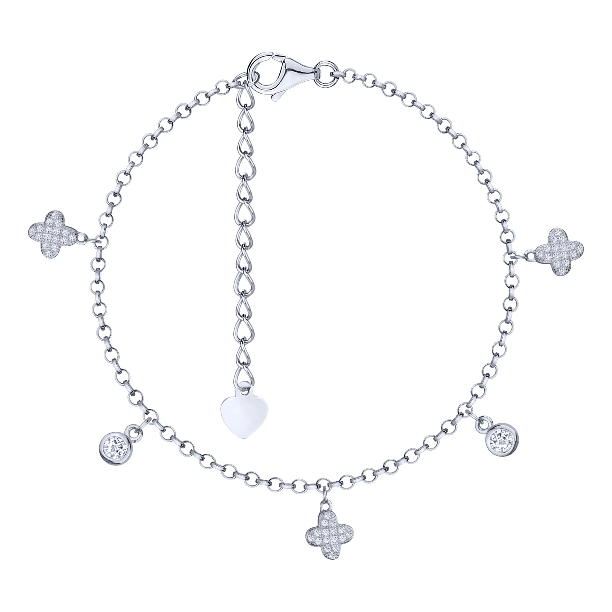 Серебряный браслет с подвесками "Клевер" с эмалью и фианитами плетение якорь - 1693629