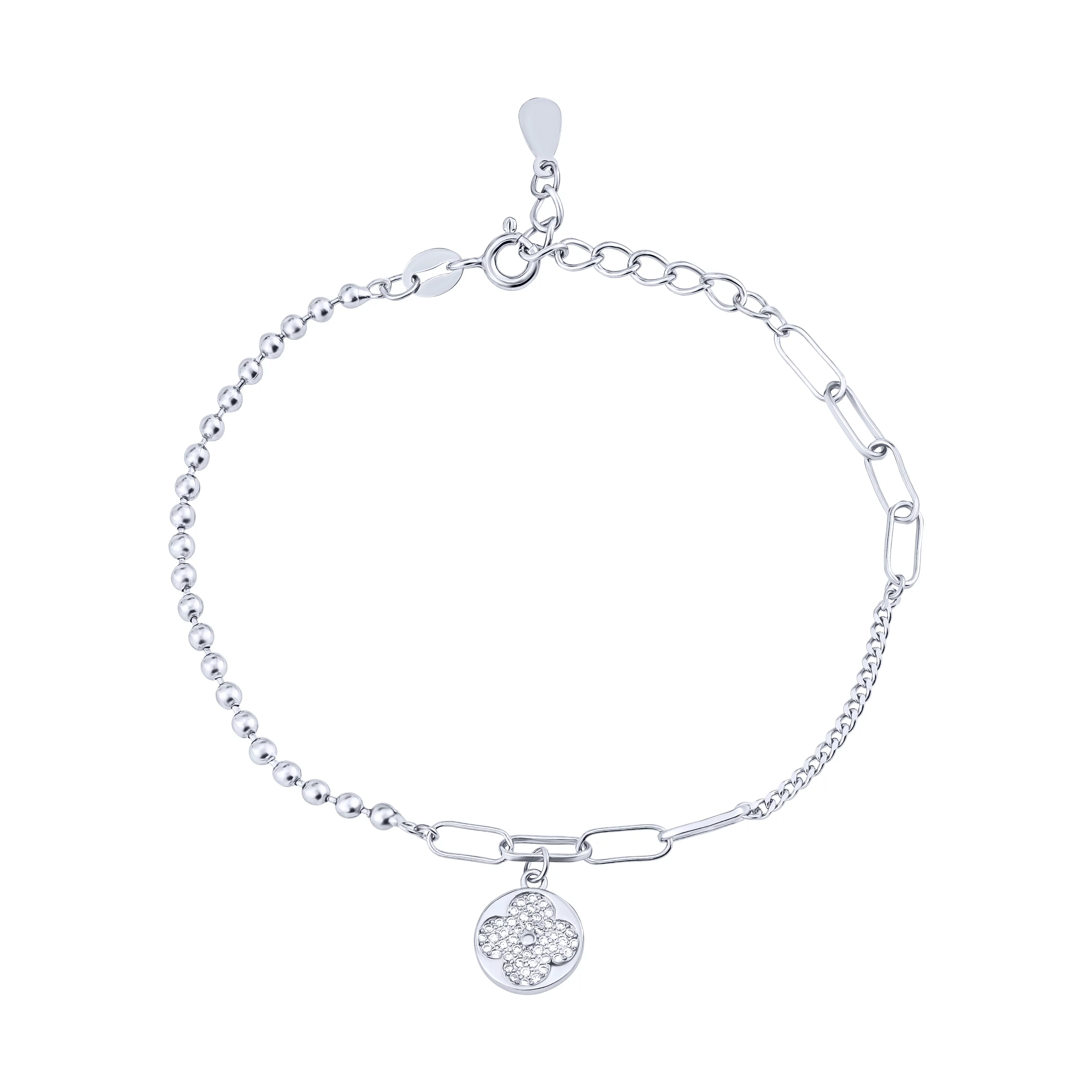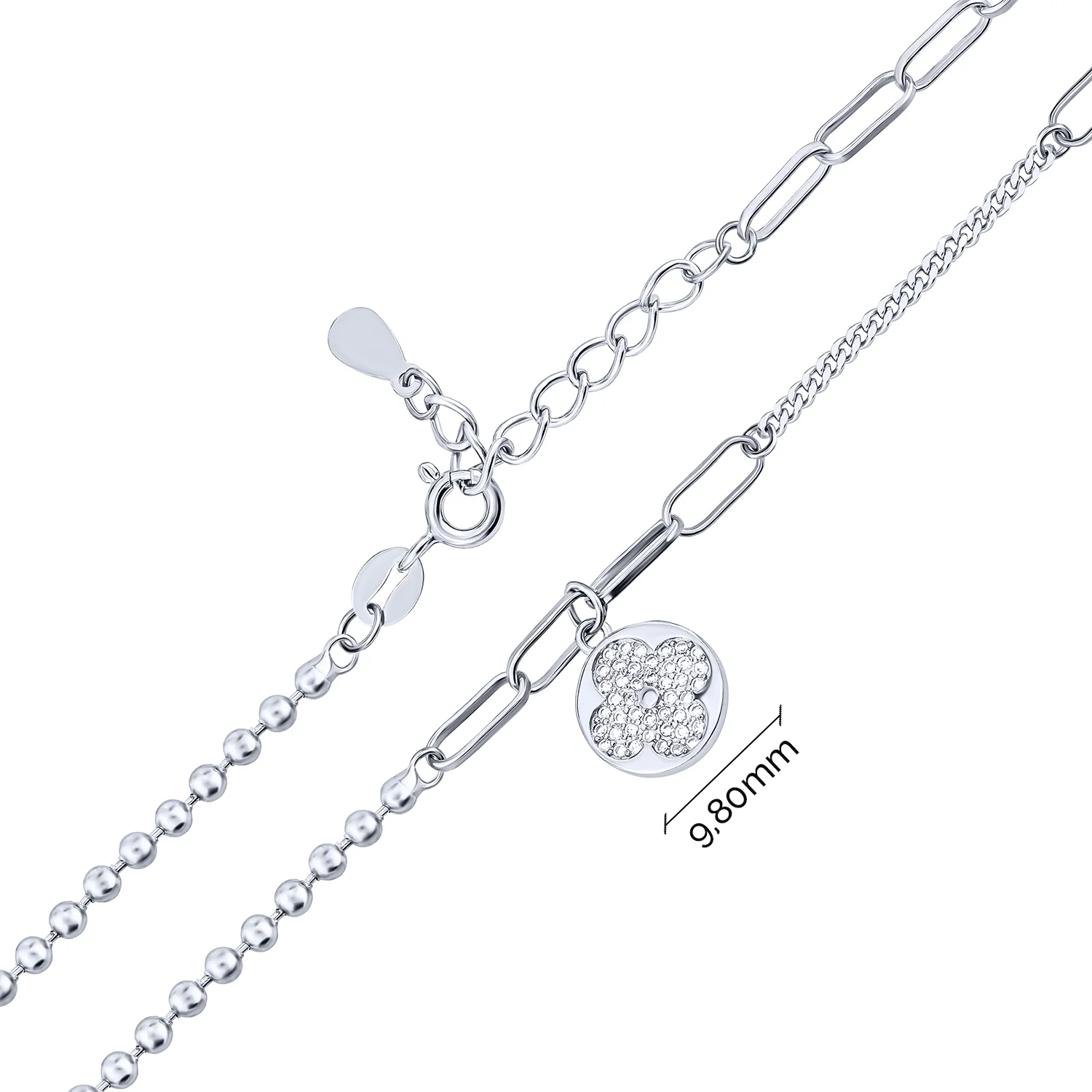 Серебряный браслет с подвесками "Клевер" с эмалью и фианитами плетение якорь - 1693629