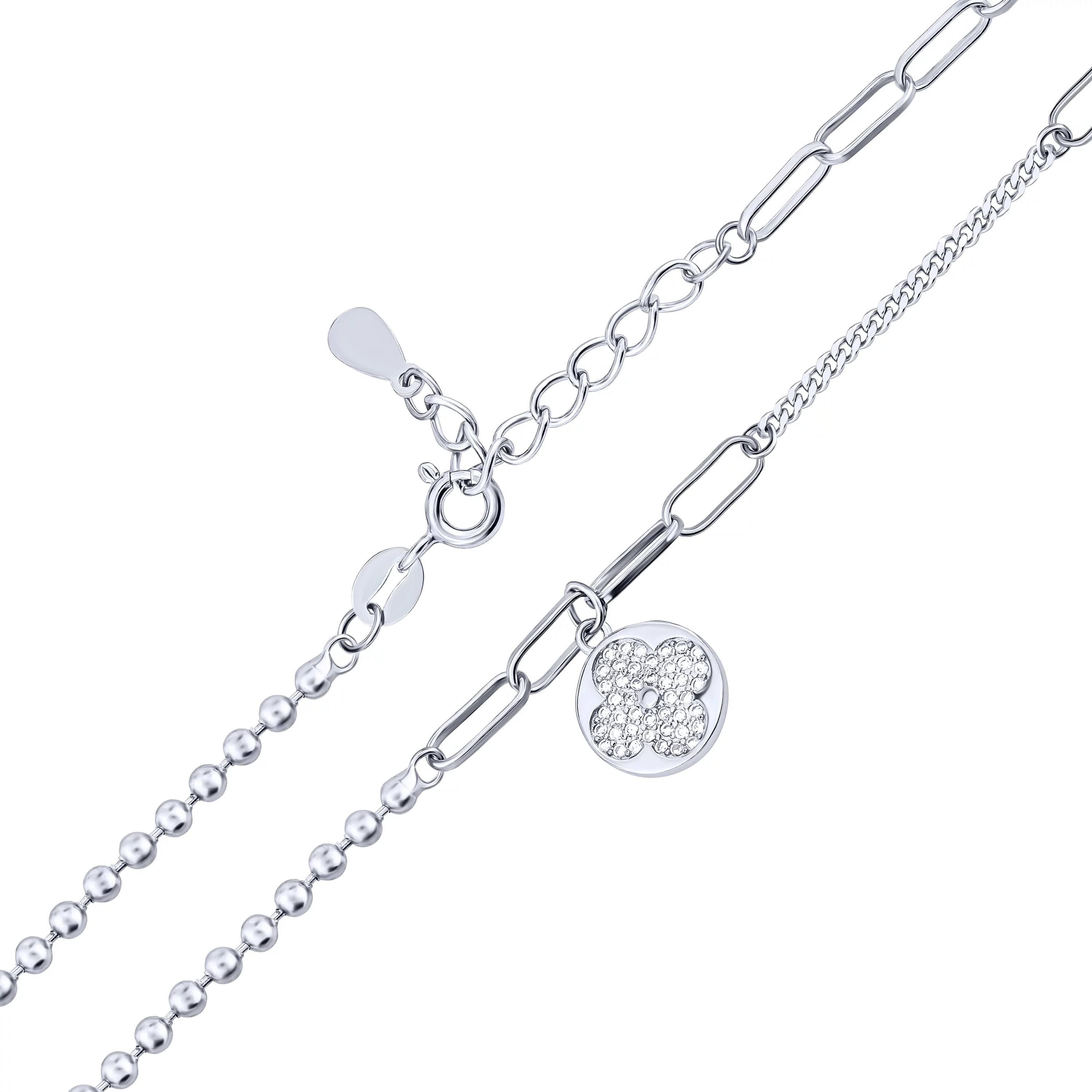 Двойной серебряный браслет с фианитом и шариками двойное плетение - 1715007