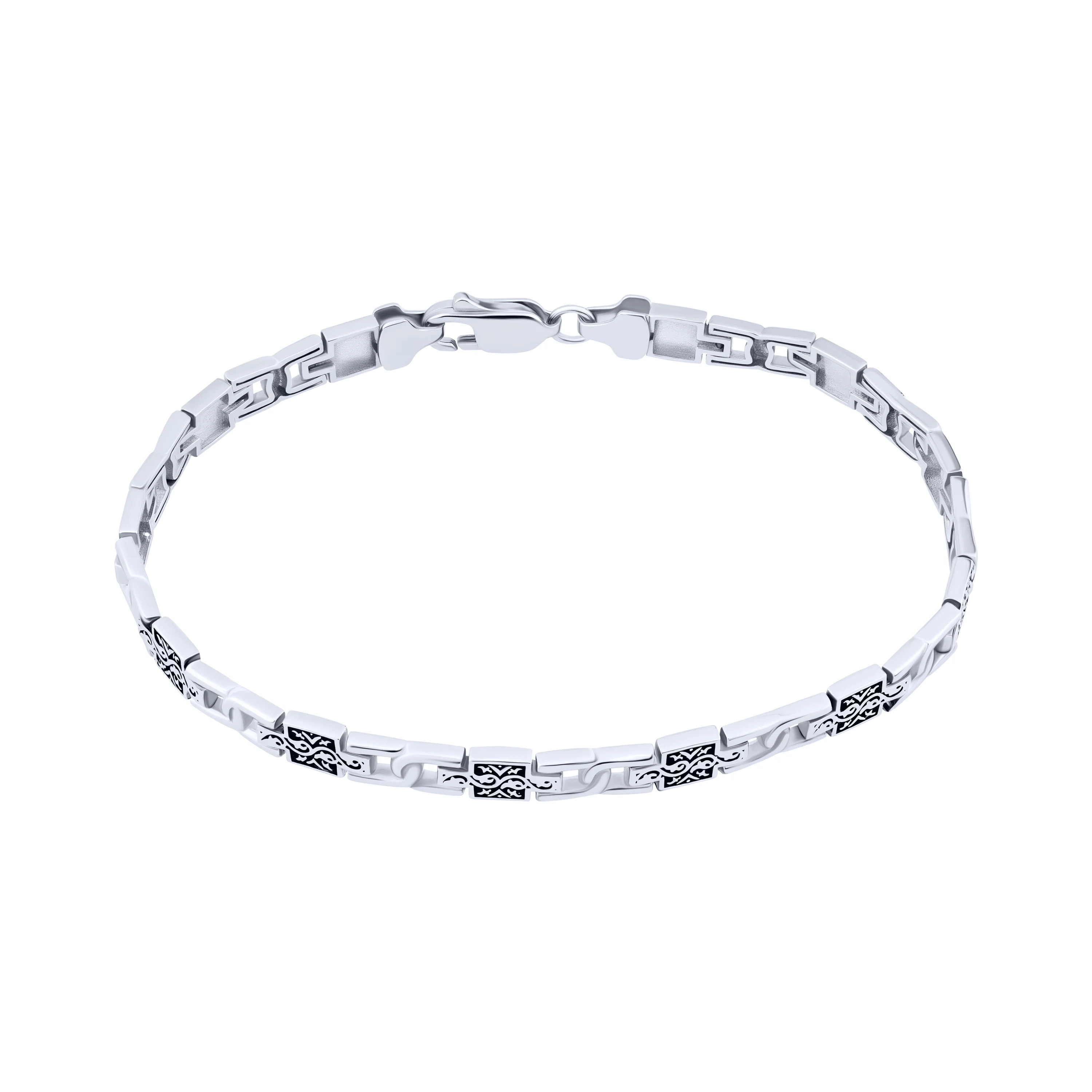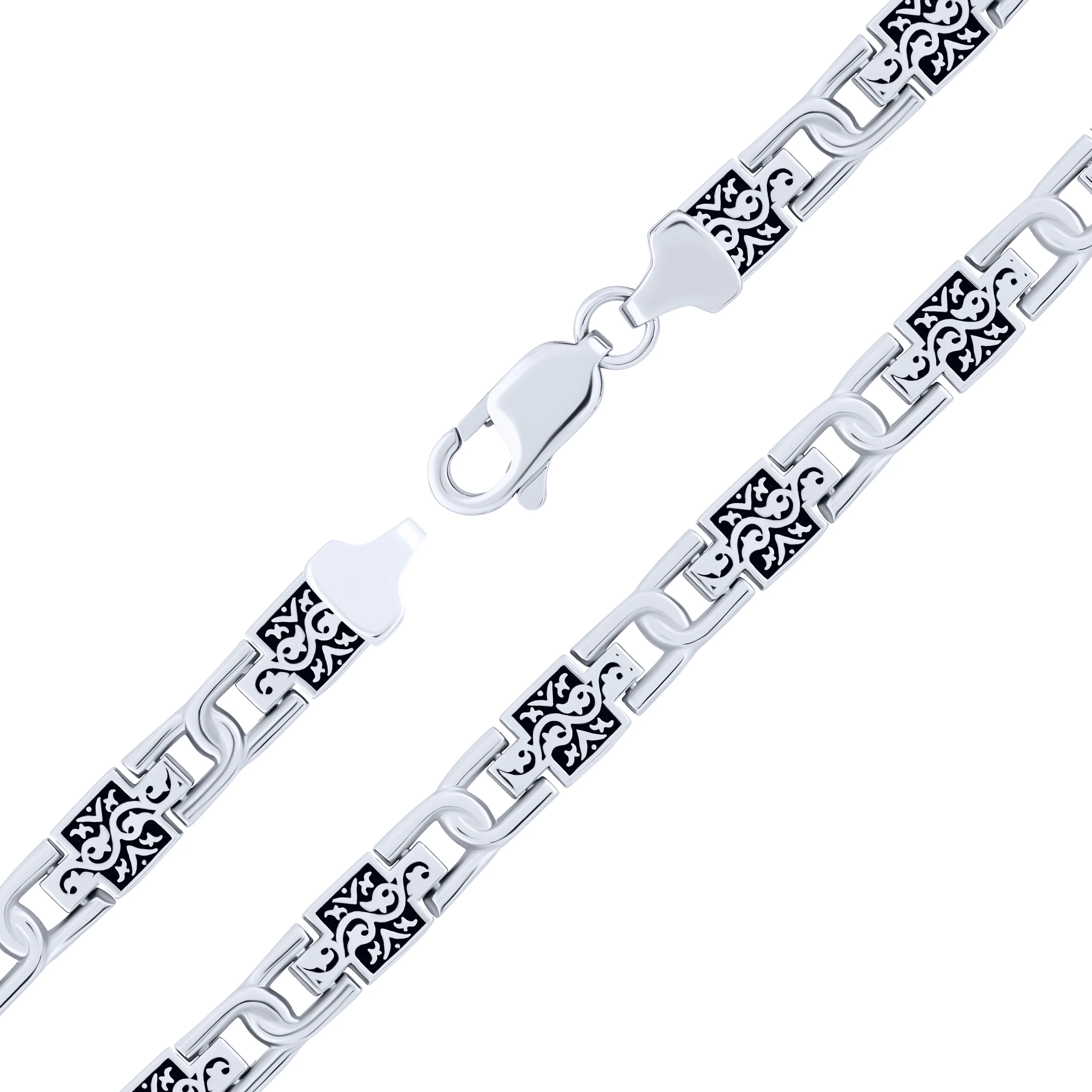 Серебряный браслет с узорами и чернением в плетении ролекс - 2107920