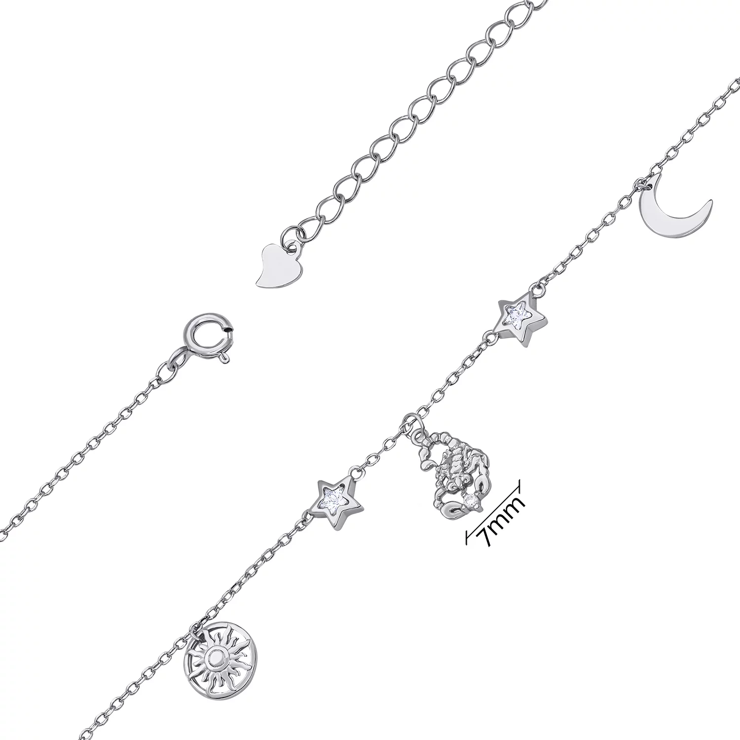 Стильный двойной серебряный браслет "Звезда" с якорным плетением и фианитами - 1939932