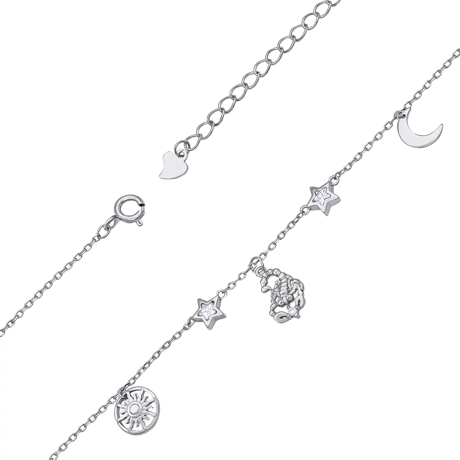 Серебряный браслет с подвесками "Клевер" с эмалью и фианитами плетение якорь - 1693629