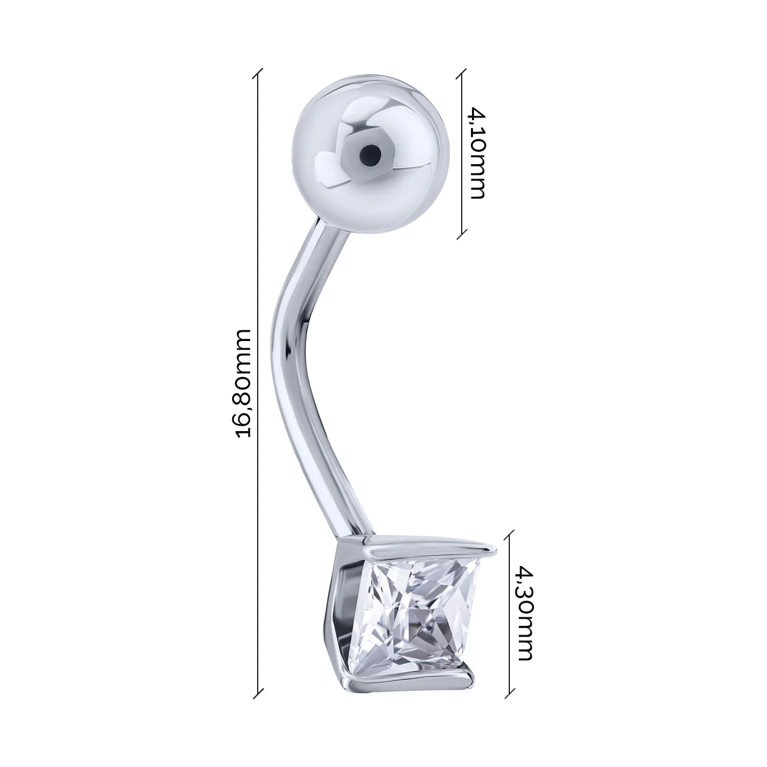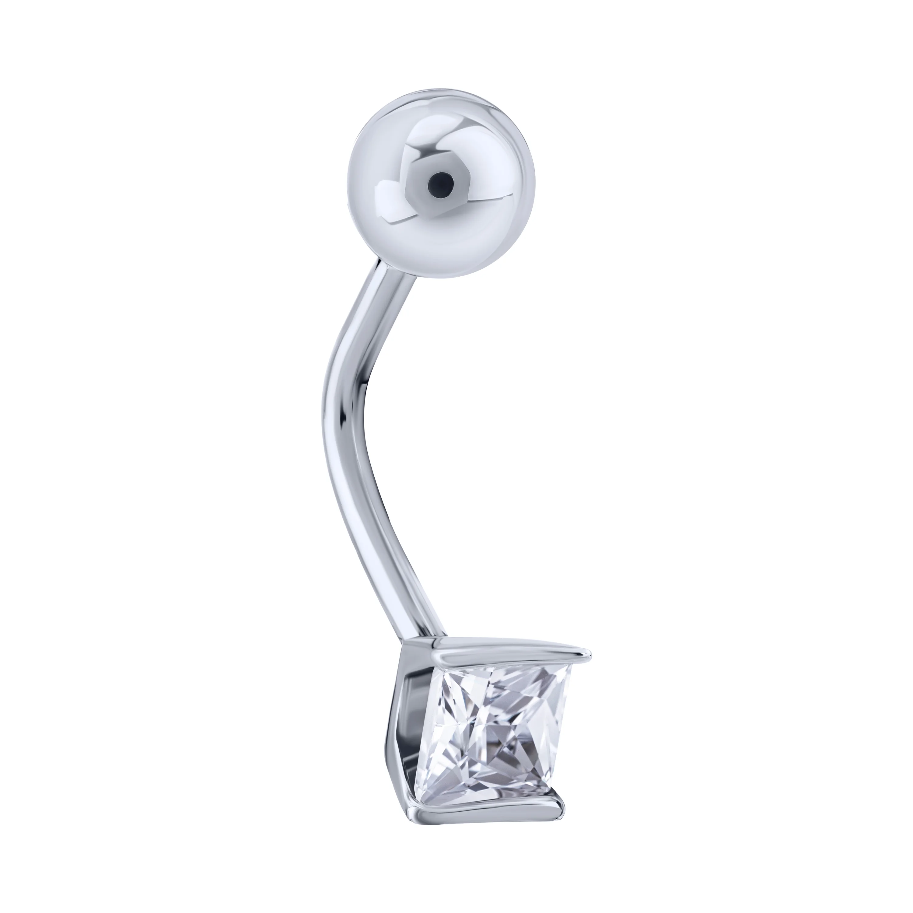 Серебряный пирсинг в пупок с фианитом - 2095517