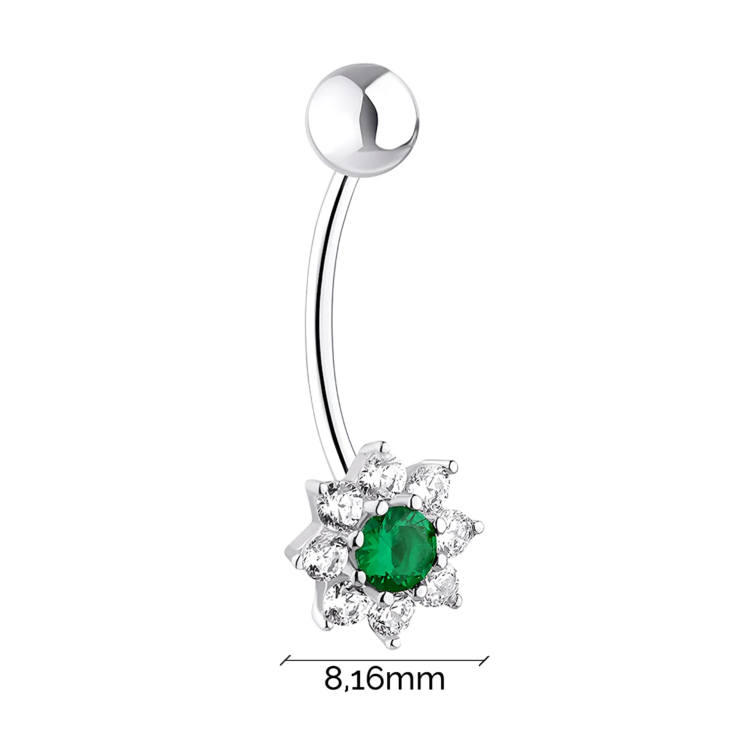 Серебряный пирсинг в пупок в форме цветочка с фианитами - 1551150
