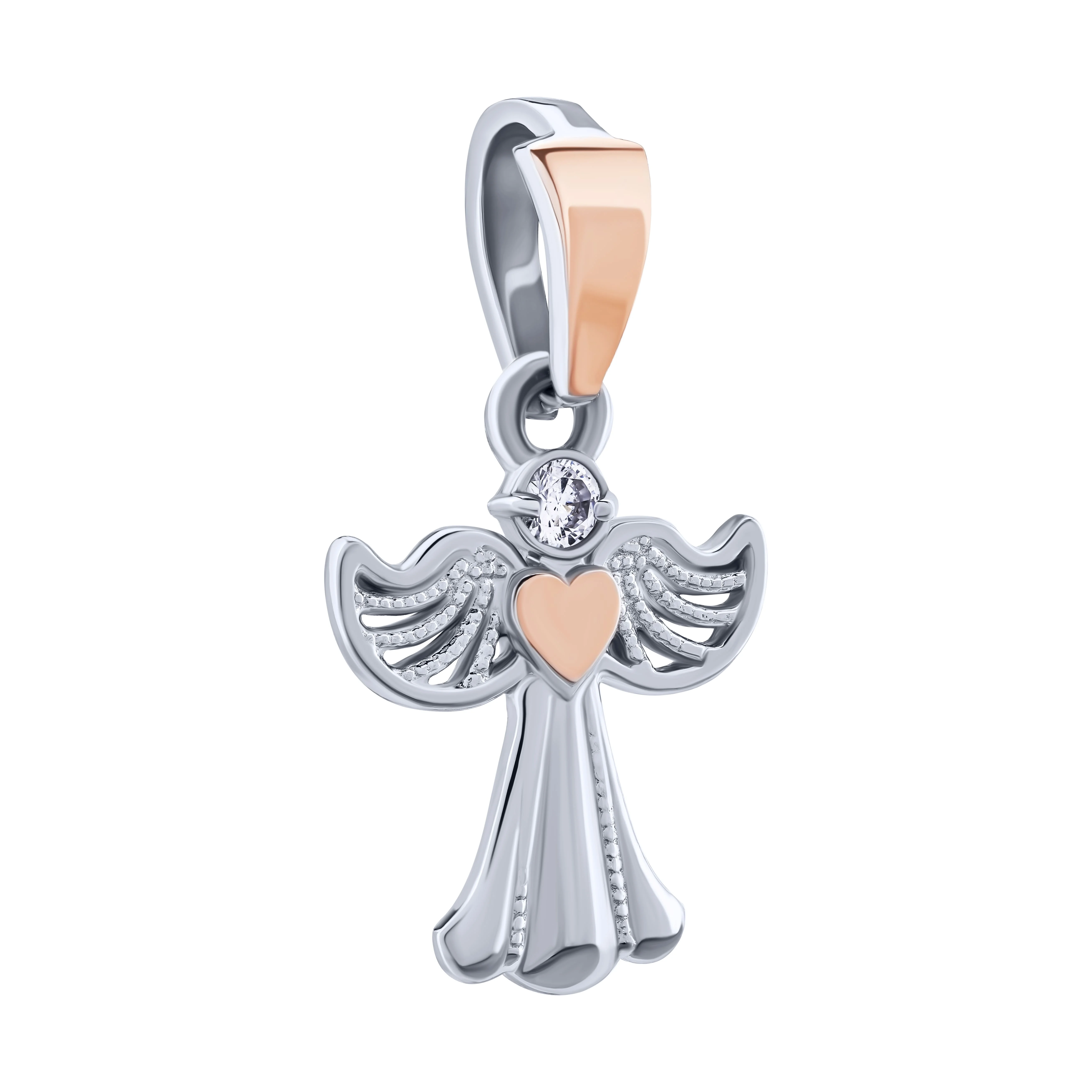 Серебряный подвес "Ангел" с фианитом и золотой накладкой - 2081961