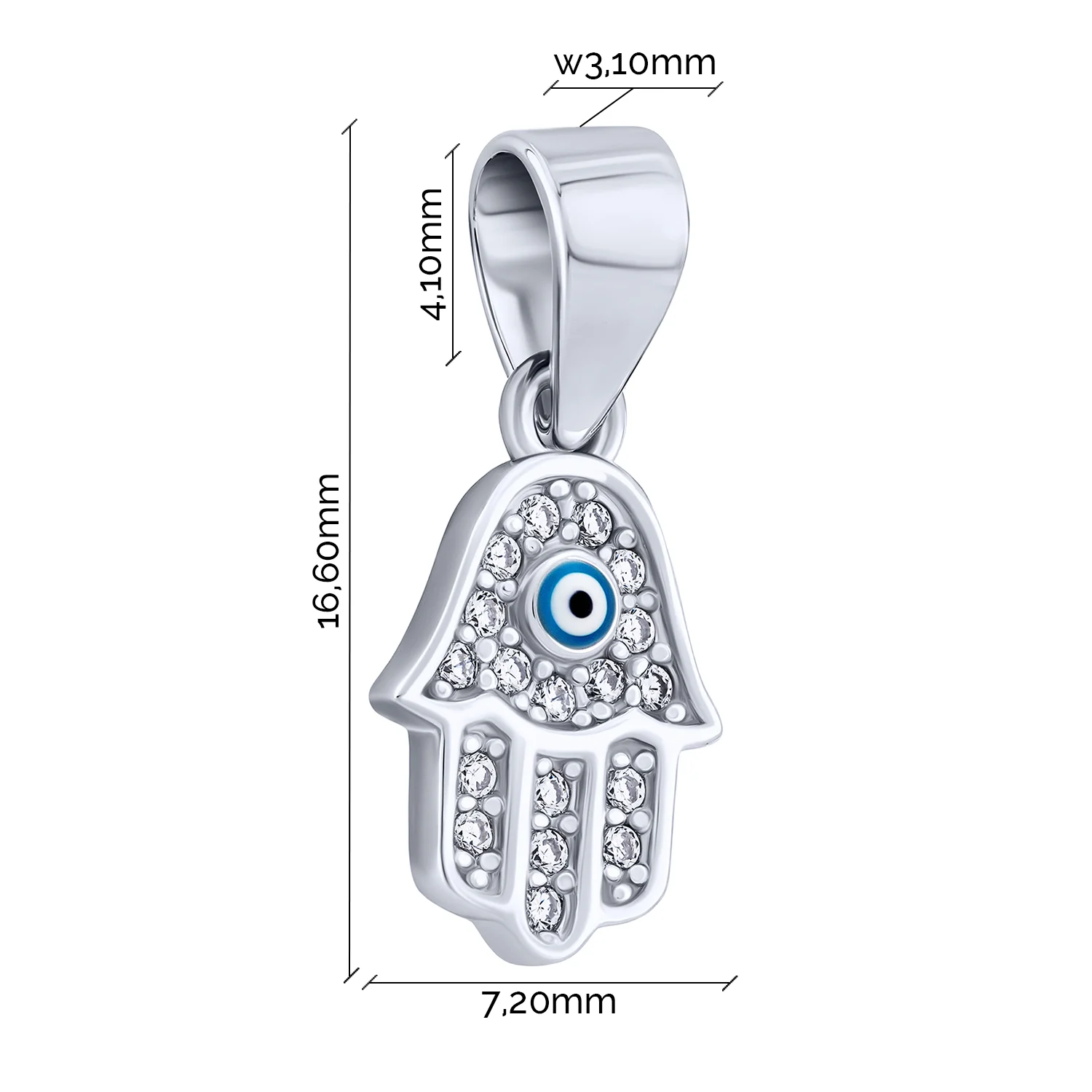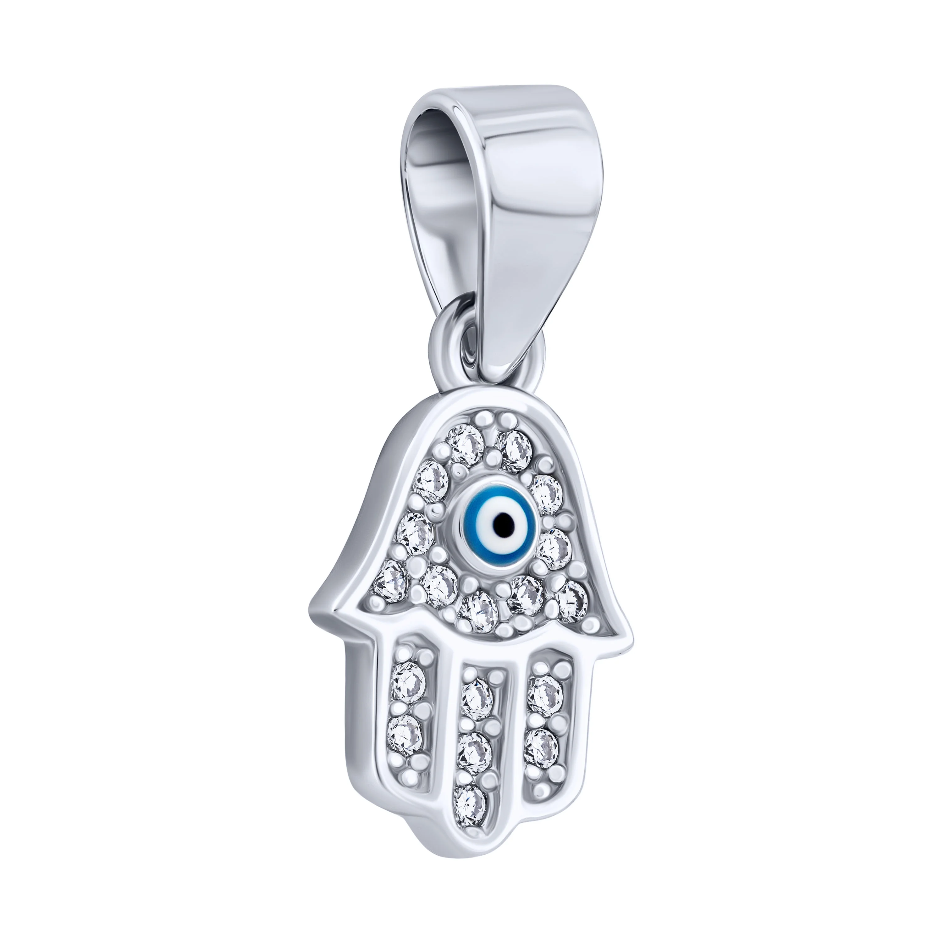 Серебряный подвес "Хамса" с фианитами и эмалью - 2085505