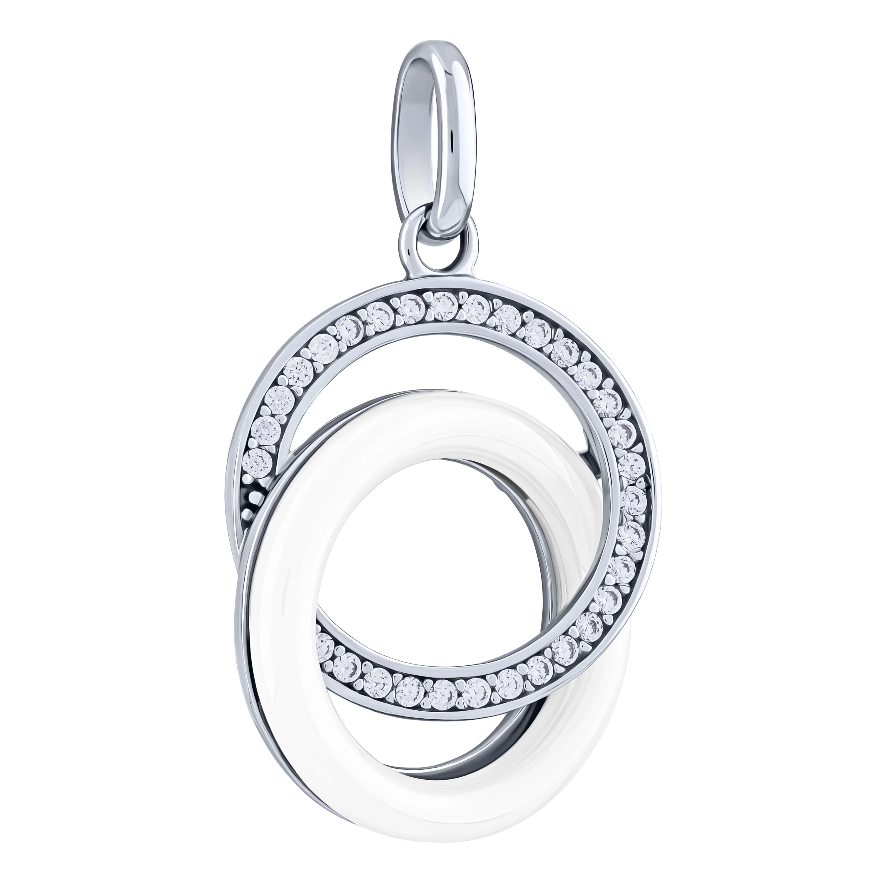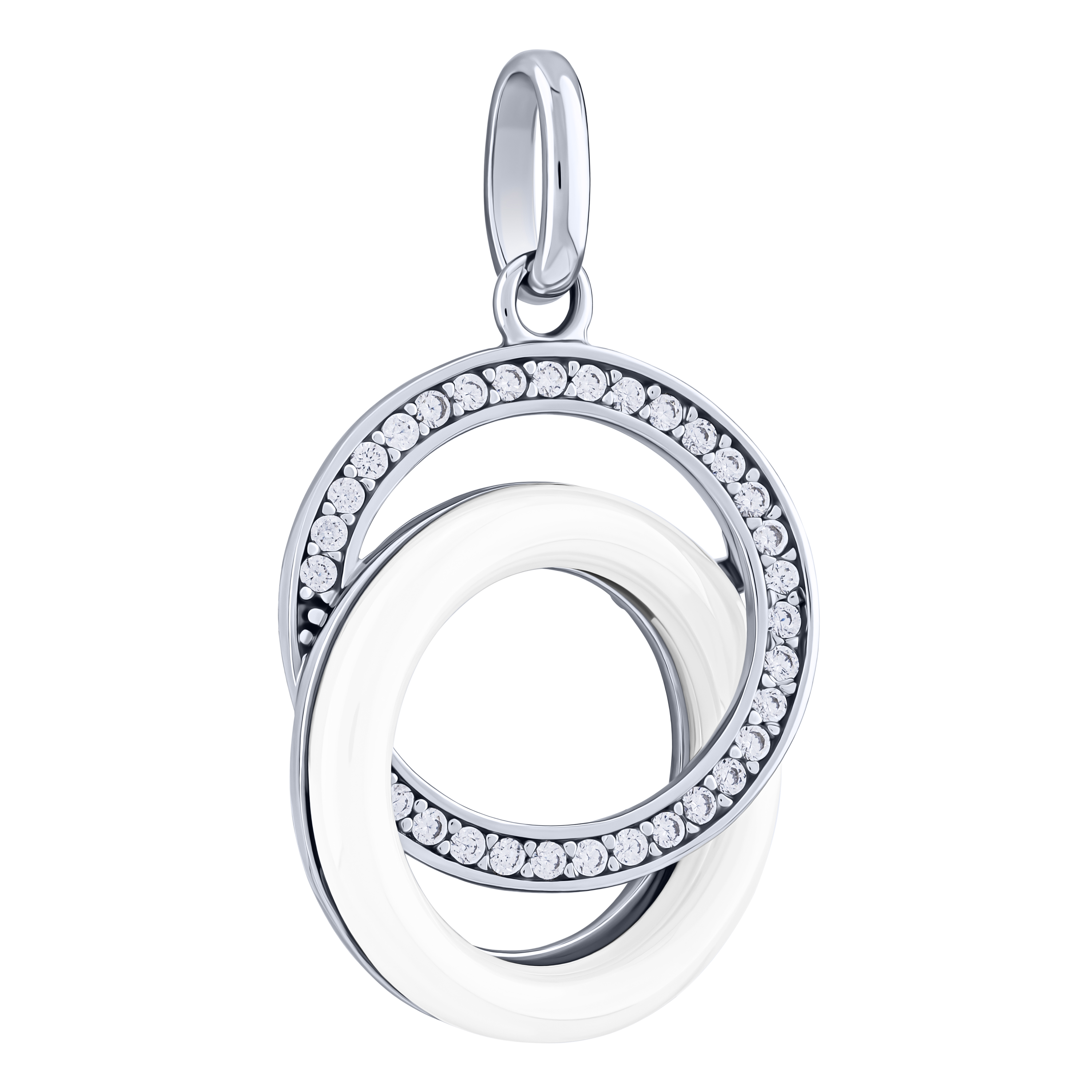 Серебряный подвес "Круги" с фианитами и керамикой - 2108048