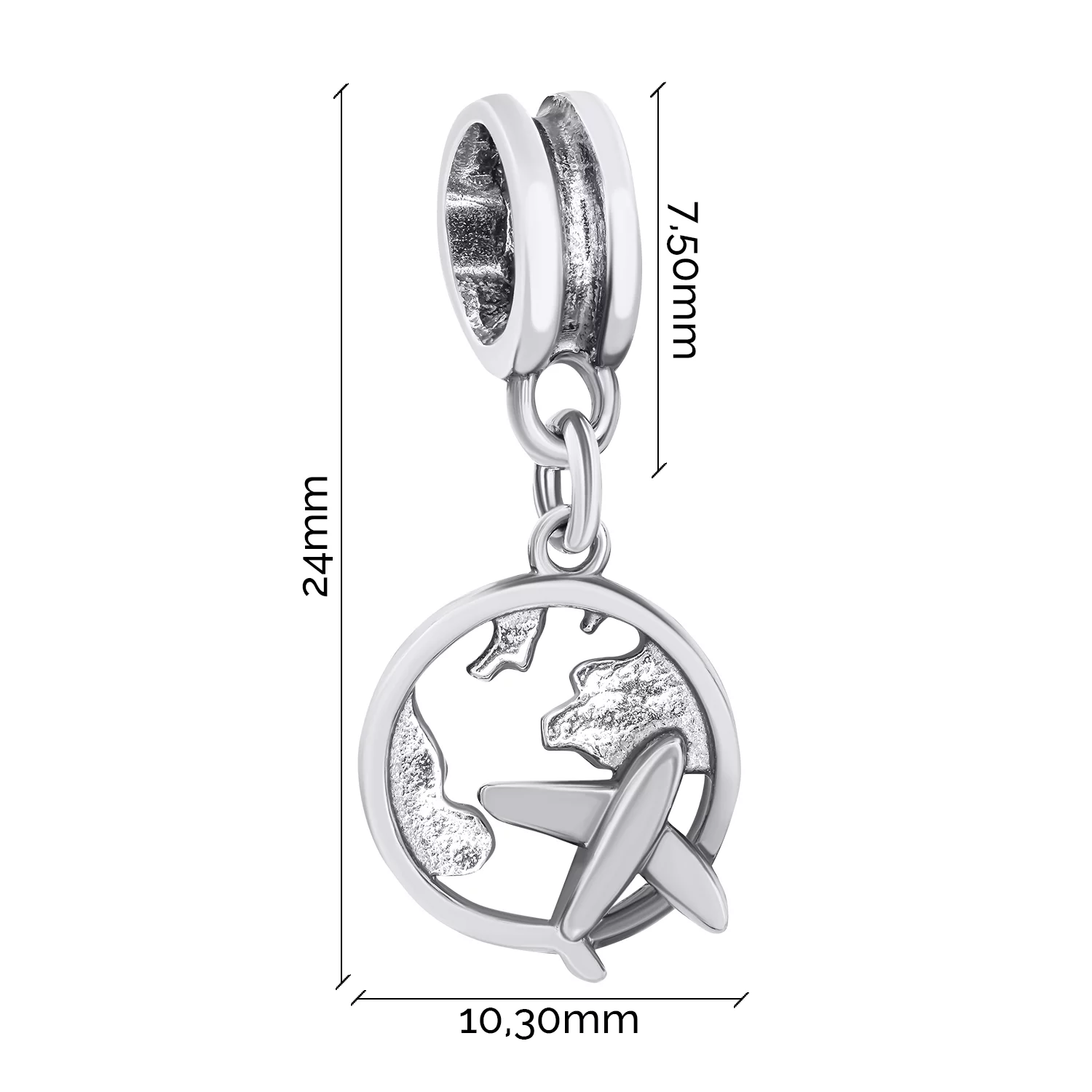 Серебряный шарм "Самолетик над Землей" с чернением - 1530829