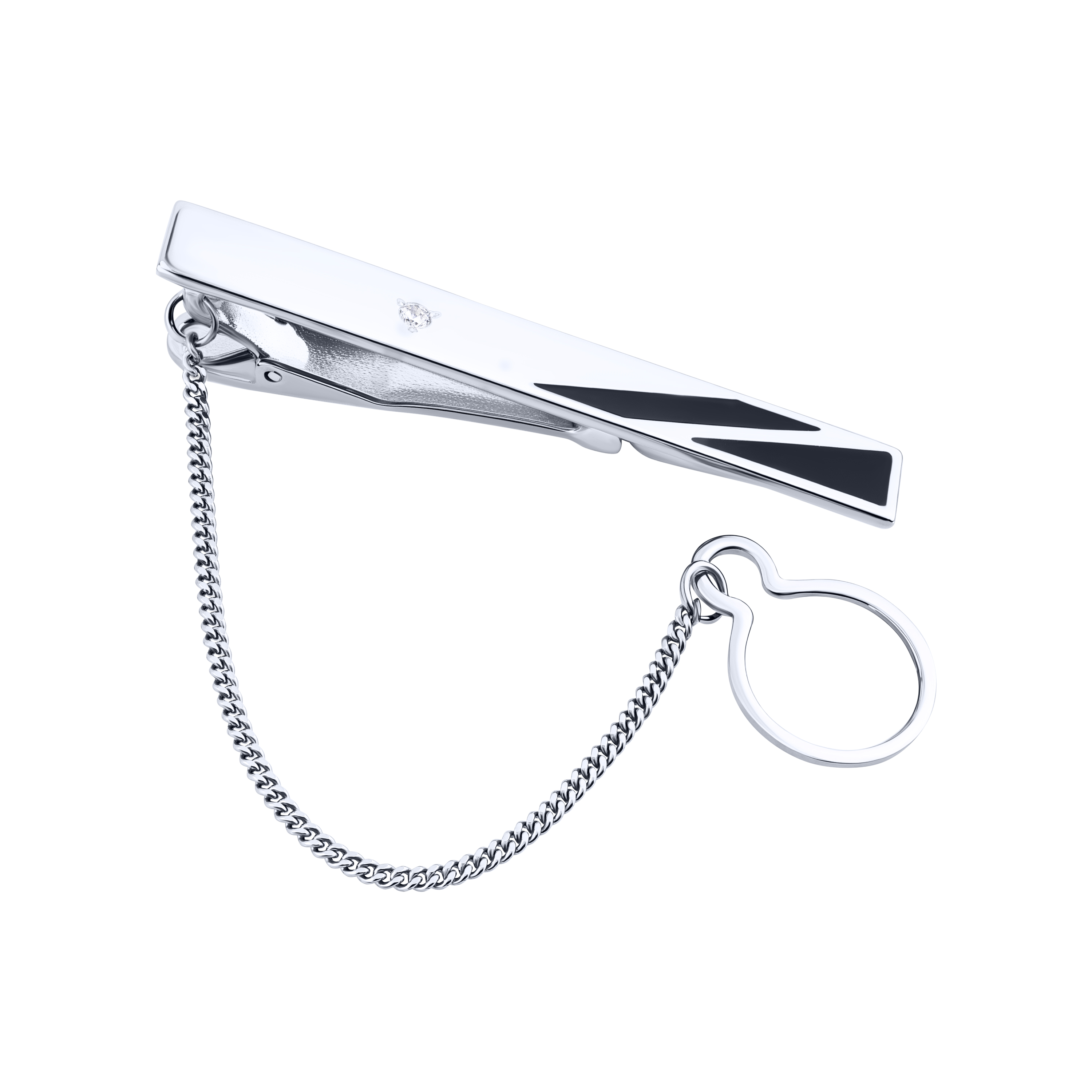 Серебряный зажим для галстука с фианитом и эмалью - 2102014