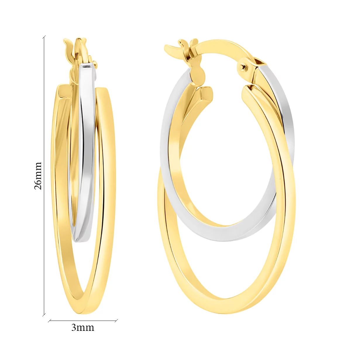 Сережки-кольца из комбинированого золота с алмазной гранью "Тринити" - 1350426