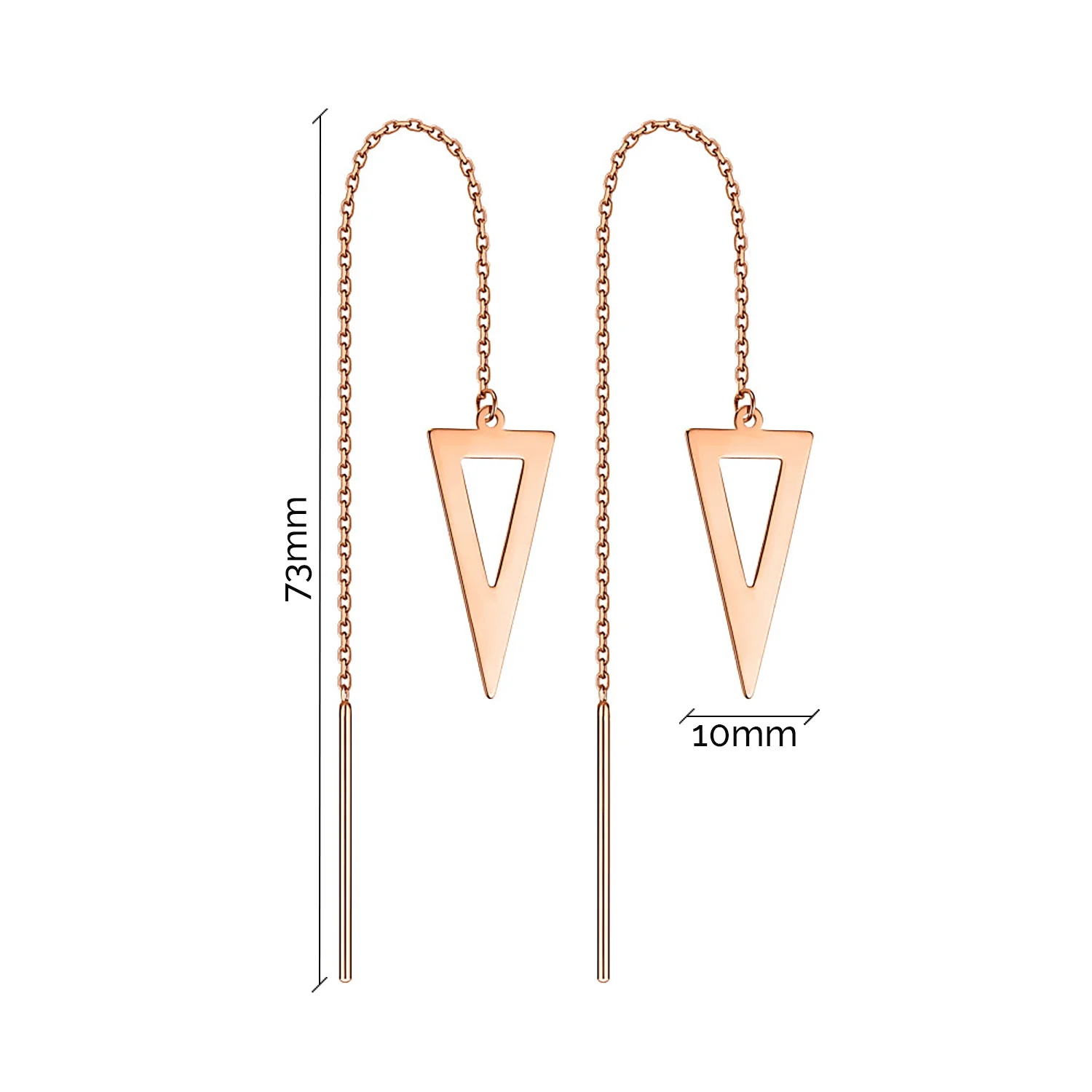 Сережки-протяжки из красного золота "Треугольники" - 1348627