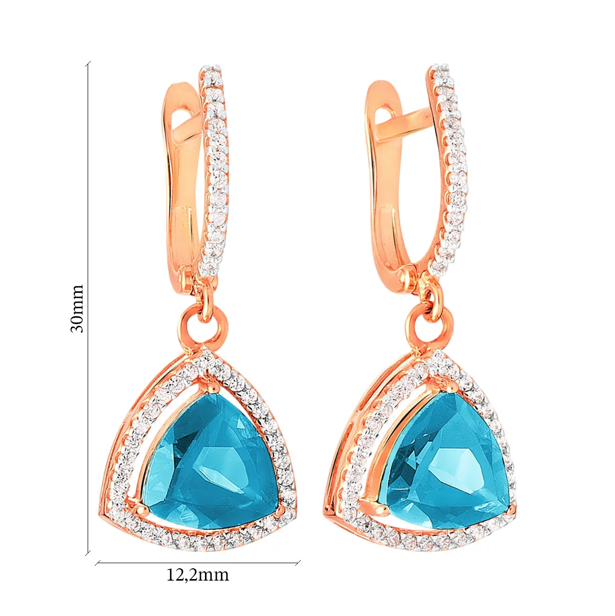 Сережки из красного золота с подвесами топазом и фианитом - 967526