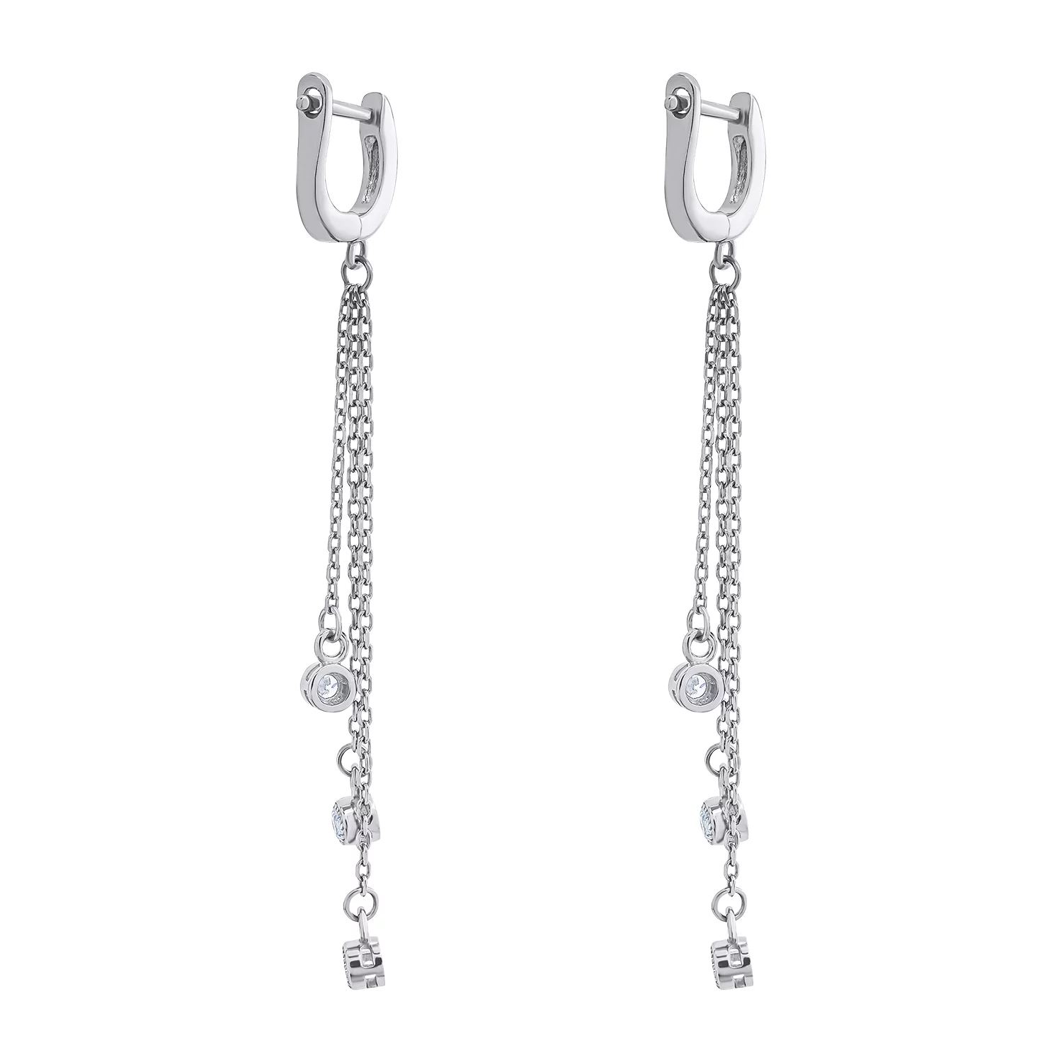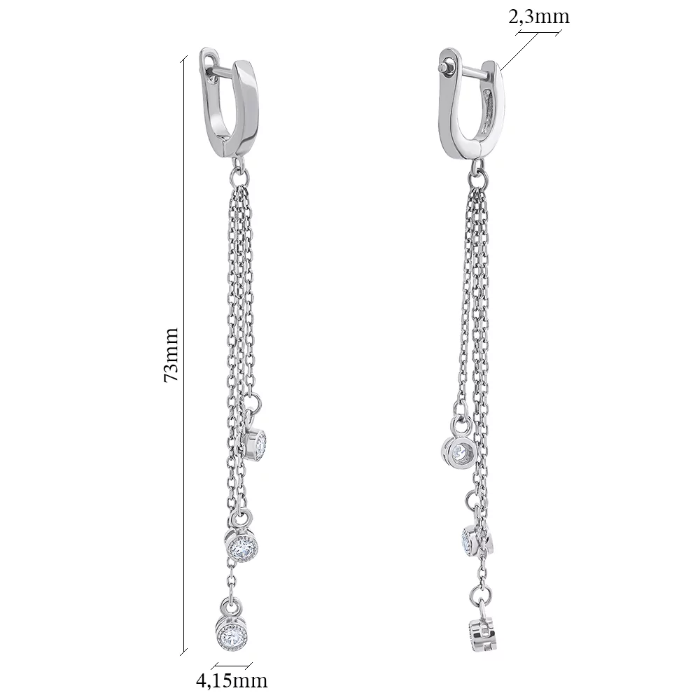 Серьги из серебра с изумрудами и фианитами с подвесом в форме "Квадрат" - 1525082