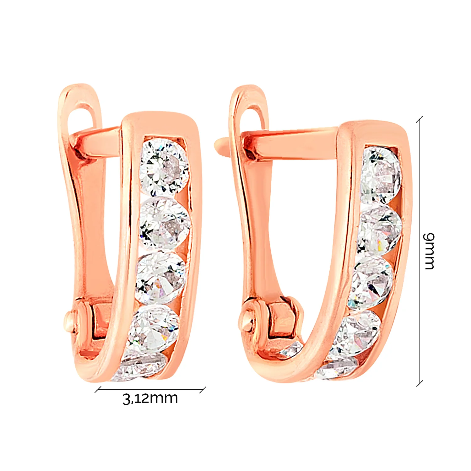 Детсике сережки из красного золота с белыми и розовыми фианитами - 1775098