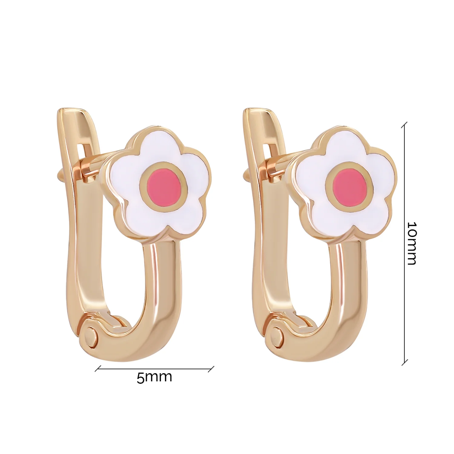 Детские сережки "Цветочек" из красного золота с фианитом и эмалью - 1919314